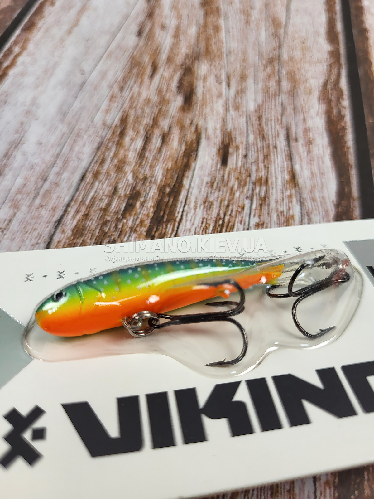 Балансир Viking Fishing Mate Ice Jig представлений трьома модельними рядами довжиною 40, 50 і 60 міліметрів, кожен з яких включає по 10 варіантів приманок з барвистими розмальовками. Всі моделі оснащені класичною хвостовою лопаттю та двома потрійними гачками – один розташований у хвостовій частині, другий на черевній. Приманка використовується в основному для прямовисної або зимової риболовлі, хоча в окремих випадках може закидатися за допомогою спінінгового або кастингового вудилища і анімуватися джиговою технікою. При вертикальному методі балансир розташовують за кілька сантиметрів від дна, після чого підкидають вгору коротким помахом вудилища. Далі вудилище швидко повертають у початкове положення. В результаті підкидання приманка відхиляється від вертикалі, а у фазі падіння рухається складною траєкторією. Після відновлення натягу волосіні та припинення вільного руху балансира витримується пауза, під час якої найчастіше відбуваються клювання. Початковий горизонт корисно змінювати. Цикл підкидання падіння та паузи повторюється кілька разів при облові однієї лунки. Амплітуда та частота помахів, а також час обробки лунки підбирають дослідним шляхом. Балансир Viking Fishing Mate Ice Jig розроблений з урахуванням чималого практичного досвіду наших експертів та найвдаліших рішень у галузі створення подібних приманок, що забезпечує рибалці високі шанси на успіх.