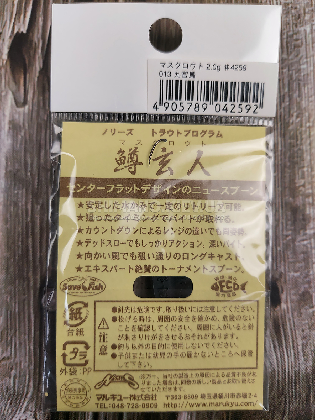 Блешня Nories Masukurouto – розроблена під керівництвом експерта Норіо Танабе після ретельного тестування в ставках з фореллю. Збалансована форма і маса дозволяють здійснювати дальній кидок навіть в умовах зустрічного вітру. Різні маси блешень володіють своїми власними технічними характеристиками - вигин, форма, товщина металу. Головною особливістю є ретельно розрахований центр тяжіння, який створює стабільні і різкі коливання. Серія Rooney має більш високочастотну гру у порівнянні з Weeper. А звичайна серія втілює в собі золоту середину характеристик частоти коливань. Система фарбування, з різними кольорами на звороті блешні візуально стимулює форель. Блешня Nories Masukurouto оснащена безбородим одинарним гачком.