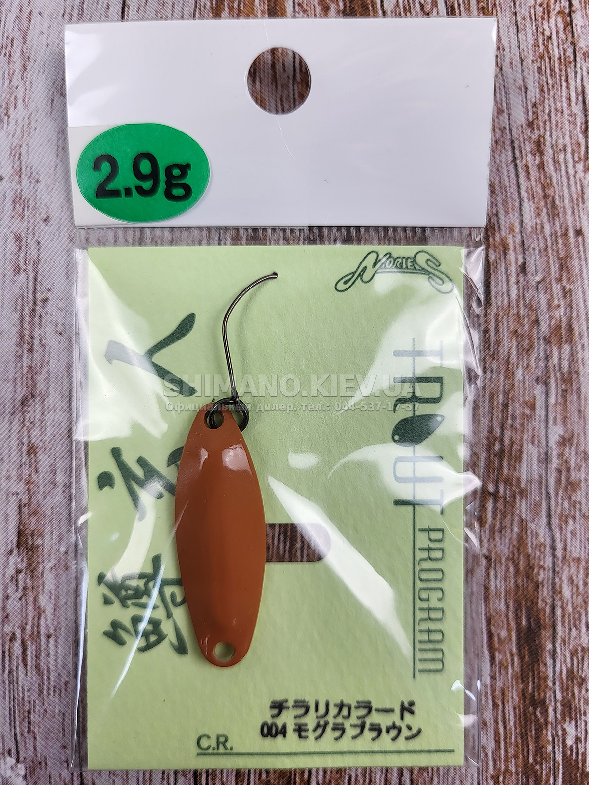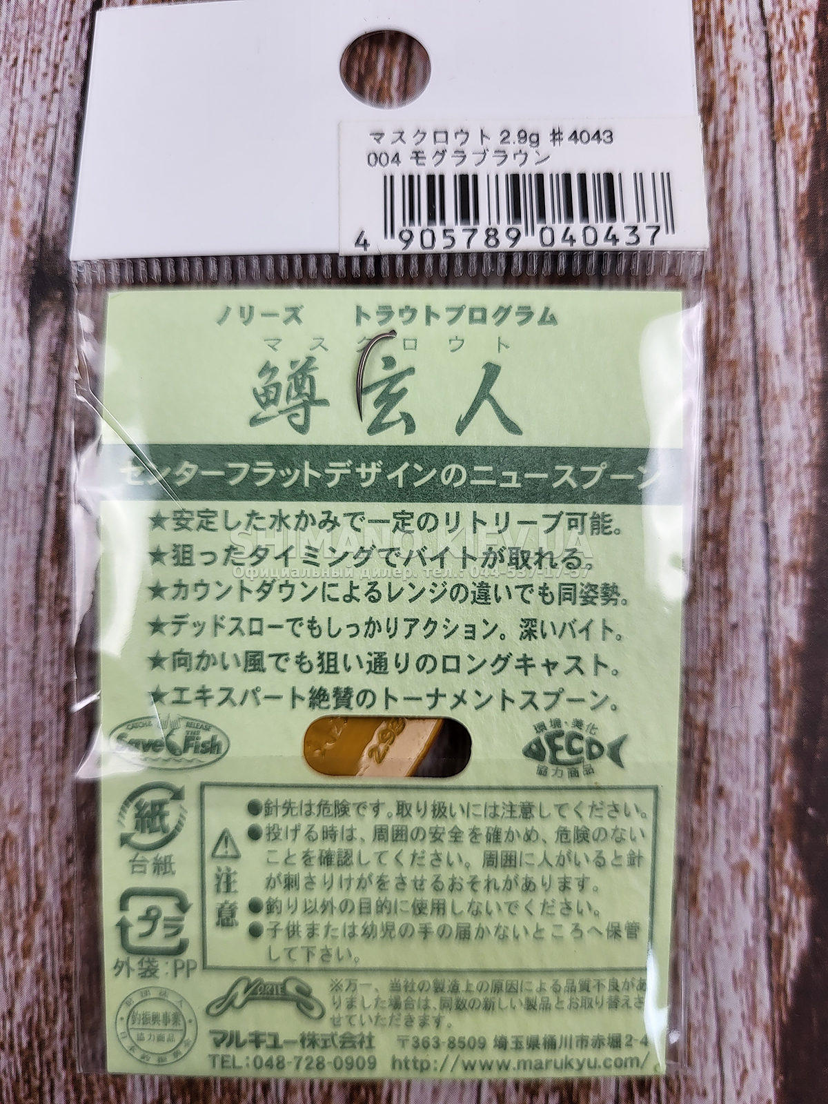 Блешня Nories Masukurouto – розроблена під керівництвом експерта Норіо Танабе після ретельного тестування в ставках з фореллю. Збалансована форма і маса дозволяють здійснювати дальній кидок навіть в умовах зустрічного вітру. Різні маси блешень володіють своїми власними технічними характеристиками - вигин, форма, товщина металу. Головною особливістю є ретельно розрахований центр тяжіння, який створює стабільні і різкі коливання. Серія Rooney має більш високочастотну гру у порівнянні з Weeper. А звичайна серія втілює в собі золоту середину характеристик частоти коливань. Система фарбування, з різними кольорами на звороті блешні візуально стимулює форель. Блешня Nories Masukurouto оснащена безбородим одинарним гачком.