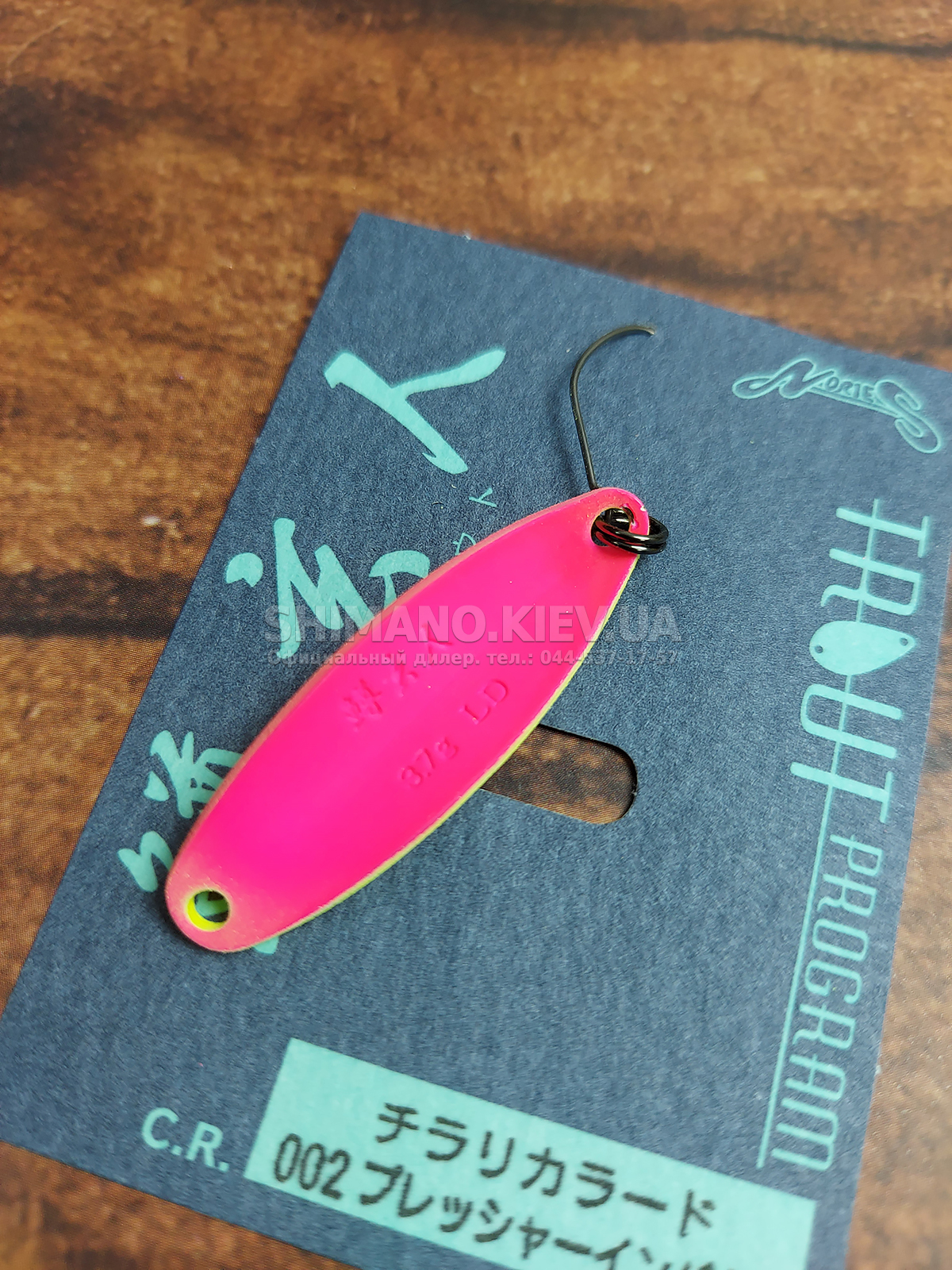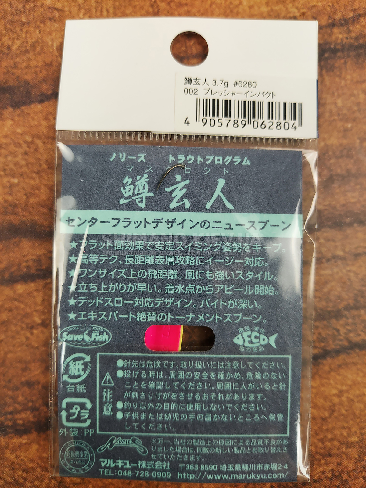 Блешня Nories Masukurouto – розроблена під керівництвом експерта Норіо Танабе після ретельного тестування в ставках з фореллю. Збалансована форма і маса дозволяють здійснювати дальній кидок навіть в умовах зустрічного вітру. Різні маси блешень володіють своїми власними технічними характеристиками - вигин, форма, товщина металу. Головною особливістю є ретельно розрахований центр тяжіння, який створює стабільні і різкі коливання. Серія Rooney має більш високочастотну гру у порівнянні з Weeper. А звичайна серія втілює в собі золоту середину характеристик частоти коливань. Система фарбування, з різними кольорами на звороті блешні візуально стимулює форель. Блешня Nories Masukurouto оснащена безбородим одинарним гачком.