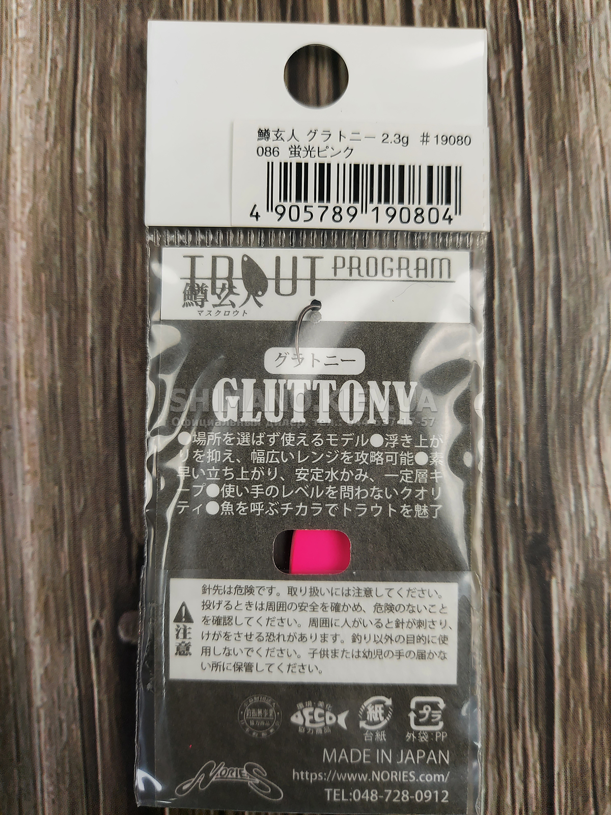 Блешня Nories Masukurouto Gluttony найбільш ефективна для лову активної риби у стоячих водоймах. Насамперед вона призначена для форелі, але може використовуватися під час полювання за окунем або щукою з ультралайтовою снастю. Блешня добре працює на великій швидкості проводки, при цьому, завдяки особливому вигину тіла, створює сильні вібрації, що приваблюють рибу з великої відстані. Вона дозволяє швидко облавлювати великі ділянки водойми, щоразу приносячи клювання найбільш активних екземплярів. При уповільненні швидкості проводки, у рибалки з'являється можливість обловити придонні шари, можливо саме сьогодні риба годується біля дна і ця блешня допоможе в цьому переконатися.Nories Masukurouto Gluttony випускається масою 1.8 та 2.3 грами, добре летить під час закидання і є дуже якісною приманкою для швидкого облову водойми.