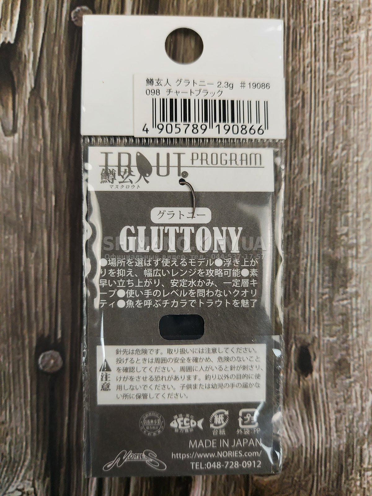 Блешня Nories Masukurouto Gluttony найбільш ефективна для лову активної риби у стоячих водоймах. Насамперед вона призначена для форелі, але може використовуватися під час полювання за окунем або щукою з ультралайтовою снастю. Блешня добре працює на великій швидкості проводки, при цьому, завдяки особливому вигину тіла, створює сильні вібрації, що приваблюють рибу з великої відстані. Вона дозволяє швидко облавлювати великі ділянки водойми, щоразу приносячи клювання найбільш активних екземплярів. При уповільненні швидкості проводки, у рибалки з'являється можливість обловити придонні шари, можливо саме сьогодні риба годується біля дна і ця блешня допоможе в цьому переконатися.Nories Masukurouto Gluttony випускається масою 1.8 та 2.3 грами, добре летить під час закидання і є дуже якісною приманкою для швидкого облову водойми.