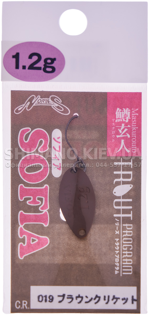 Блешня Nories Masukurouto Sofia - створена для лову ставкової форелі. Модельний ряд цих чудових приманок відноситься до розряду універсальних, які можна використовувати як пошукових, так і при зниженні активності риби, а також у багатьох інших мінливих ситуаціях, що виникають в процесі ареа фішингу. Збалансована форма та маса дозволяють здійснювати далекий закид навіть в умовах зустрічного вітру. Різні габарити блешень мають певні параметри - маса і товщина металу, але при цьому мають схожий характер гри. Блешня створює досить потужні коливання, створює суттєвий опір під час проведення, завдяки чому реєстрація навіть найобережніших клювань стає значно простішою. Головною особливістю моделей є ретельно розрахований центр ваги, завдяки чому досягається стабільність у польоті та необхідний характер коливань. Принцип фарбування, з різними кольорами по обидва боки блешні візуально стимулює форель. Блешня Nories Masukurouto Sofia оснащена безбородим одинарним гачком, що відповідає вимогам правил риболовлі на більшості форелевих водойм. Блешня Nories Sofia в першу чергу призначена для форелевої риболовлі на стоячих водоймах, але також вона показує непогані результати при лові іншої риби, наприклад, окуня, в’язя, червонопірки та інших.Блешня Nories Sofia мініатюрна модель, призначена для делікатного подачі приманки обережної риби на запресованих водоймах. Незважаючи на свій невеликий вагу, вона володіє непоганими польотні характеристиками, так як розробники дуже точно пропрацювали її форму і пропорції. В роботі коливається блешня Nories Sofia дуже універсальна, так як дозволяє проводити будь-які типи проводок, починаючи з простою рівномірної і закінчуючи ривками і підкинули вудлищем.