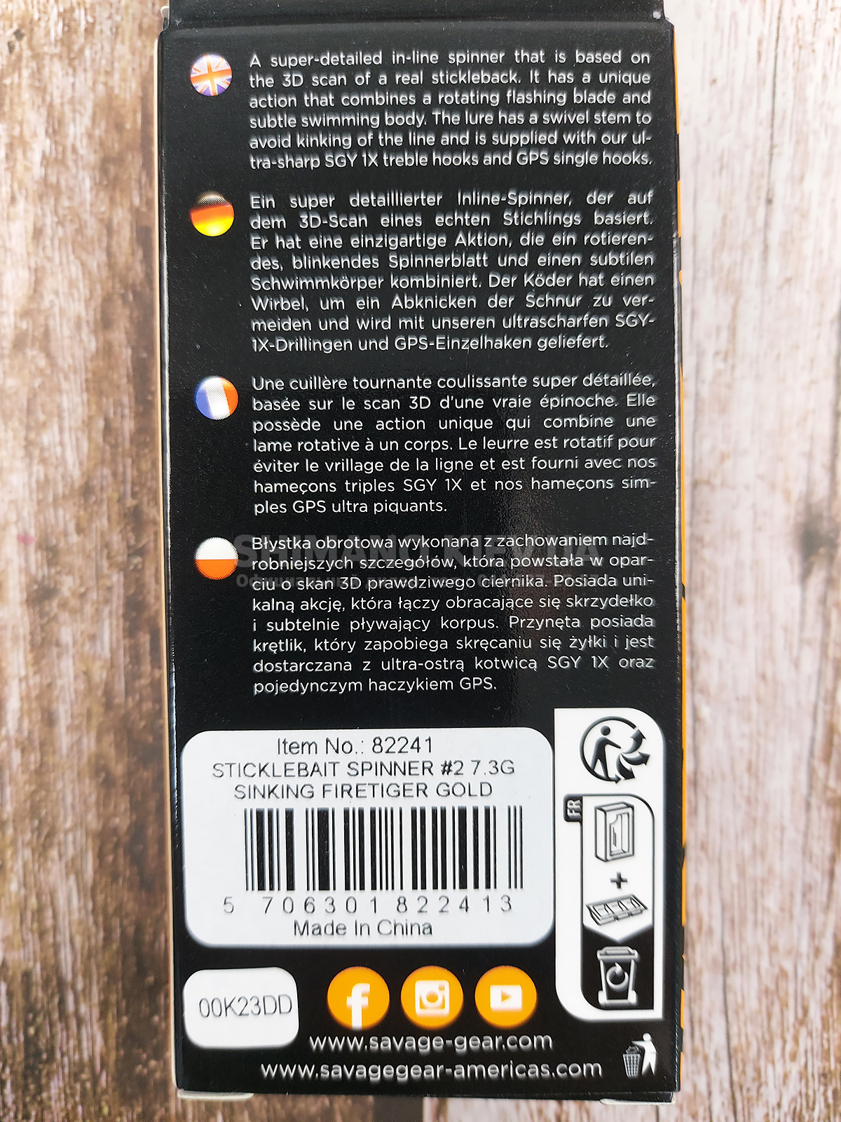 Блешня Savage Gear Sticklebait Spinner - вертушка з ін-лайн пелюсткою, закріпленою безпосередньо на осі, яка призначена для лову риби на течії. Вона має унікальний асиметричний сердечник, що візуально нагадує малька, щоб у хижака не було жодних сумнівів у їстівності здобичі. До того ж такий вантаж стабілізує блешню на швидких проводках, а вбудований спереду вертлюг запобігає перекручуванню волосіні. Приманка оснащена високоякісним трійником, а також у комплекті є одинарний гачок, який можна встановити для зменшення зачепів або для меншого травмування риби.Блешня Savage Gear Sticklebait Spinner рекомендована для лову практично будь-якого хижака, що мешкає на течії, наприклад, головня, окуня, жереха, форелі і т.д.