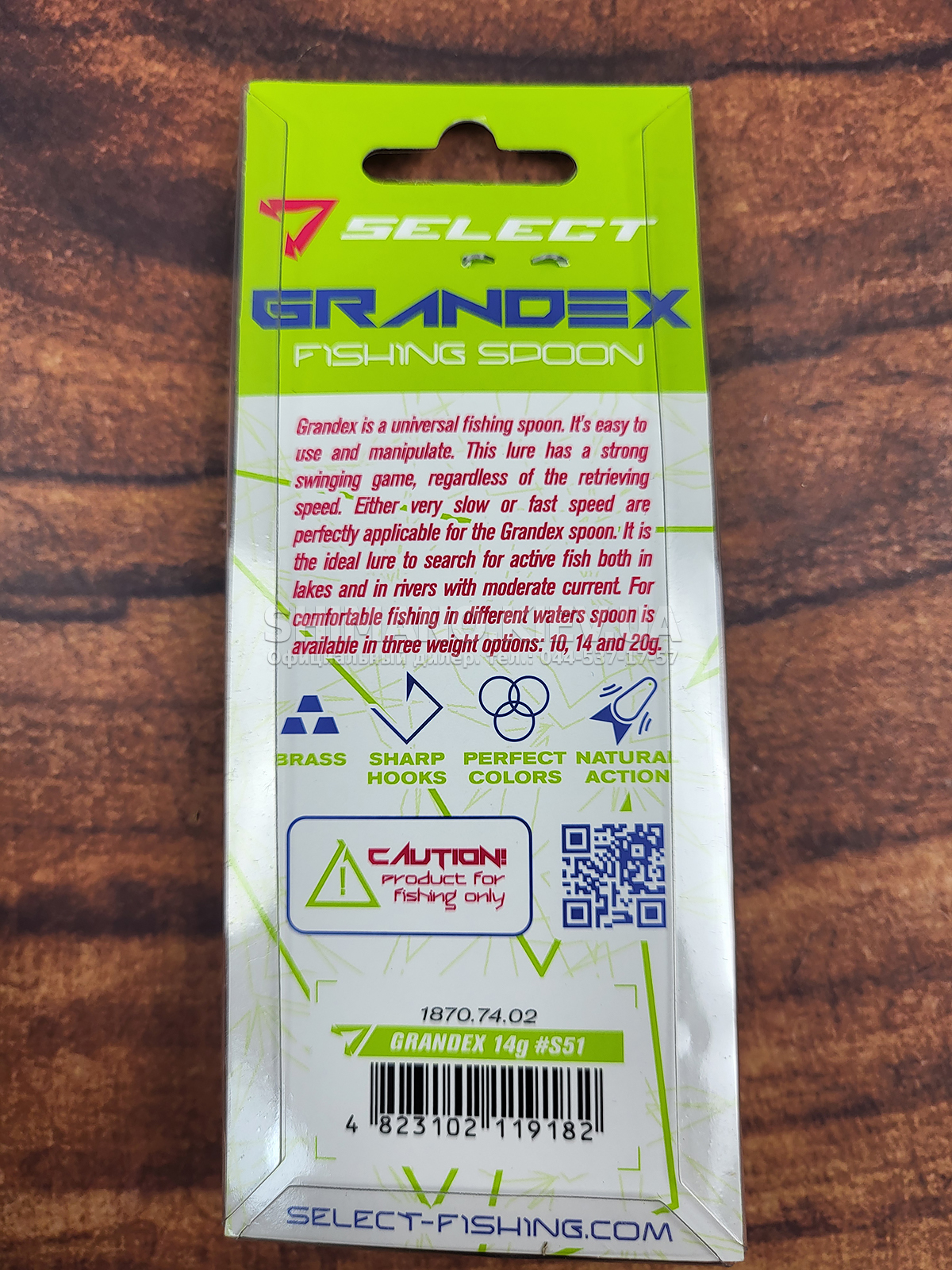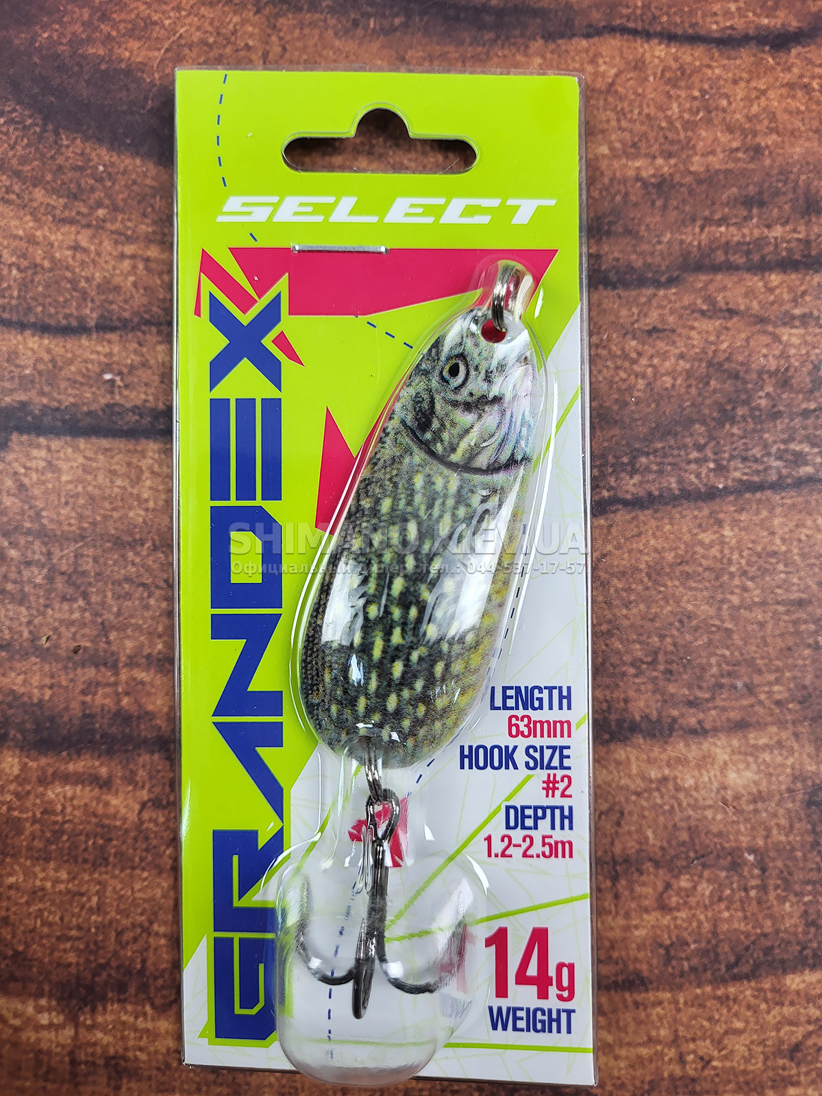 Select Grandex — універсальна блешня-коливалка, створена для результативного лову щуки, окуня та іншого хижого хижого виду. Вона проста у використанні, має стабільну та виразну гру, яка зберігається навіть при зміні швидкості проводки.