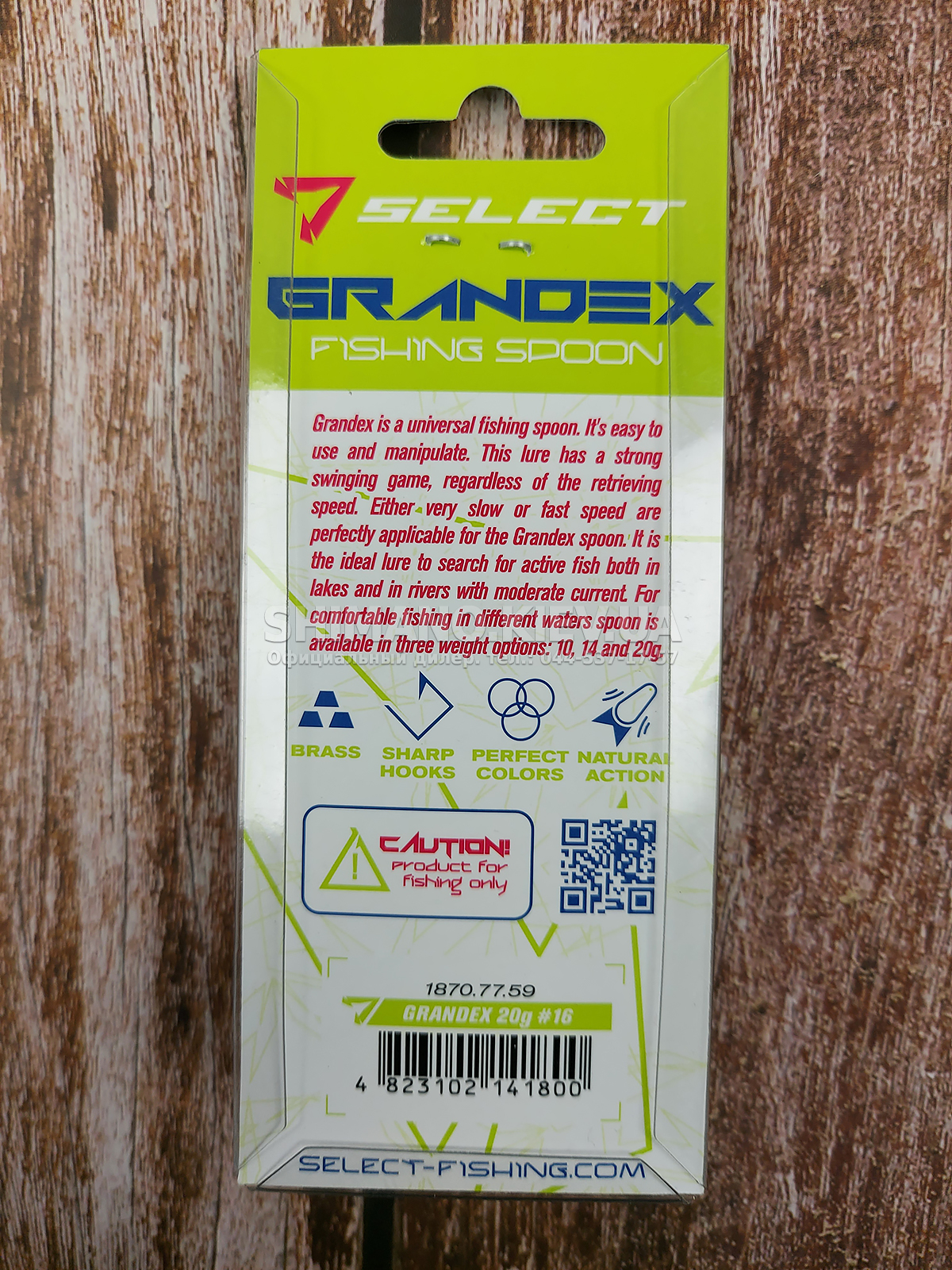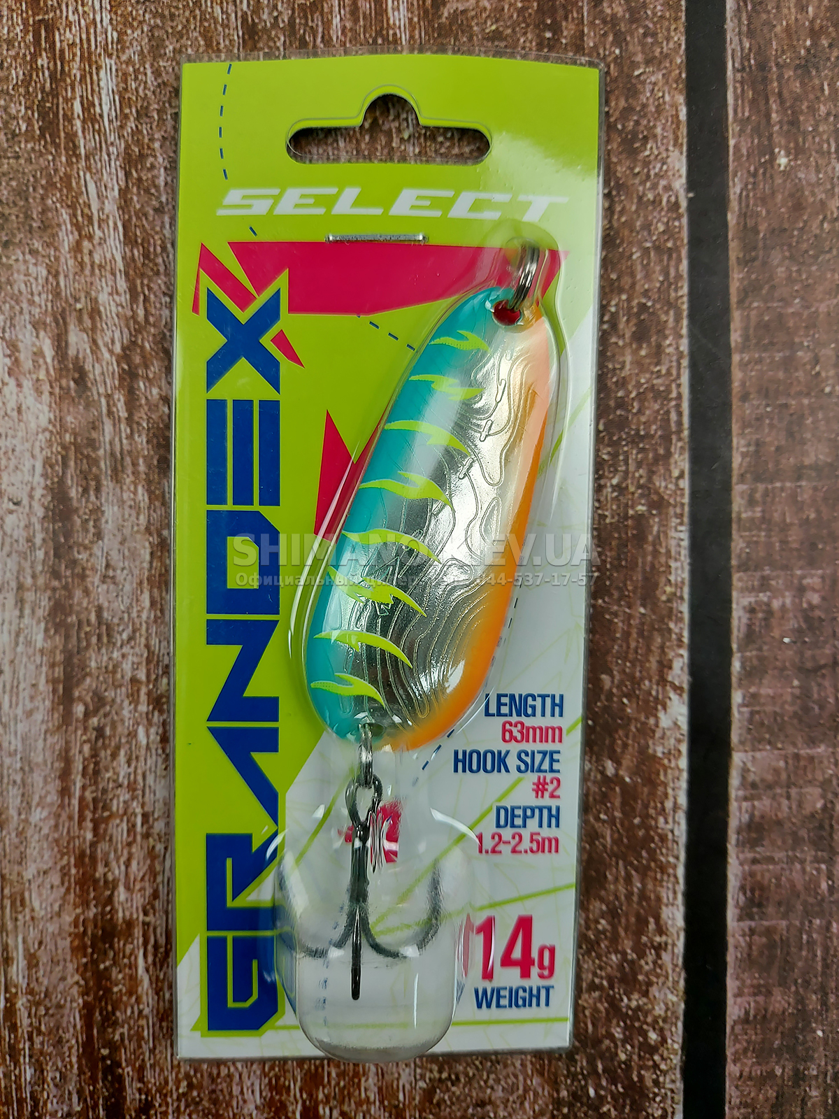 Select Grandex — універсальна блешня-коливалка, створена для результативного лову щуки, окуня та іншого хижого хижого виду. Вона проста у використанні, має стабільну та виразну гру, яка зберігається навіть при зміні швидкості проводки.