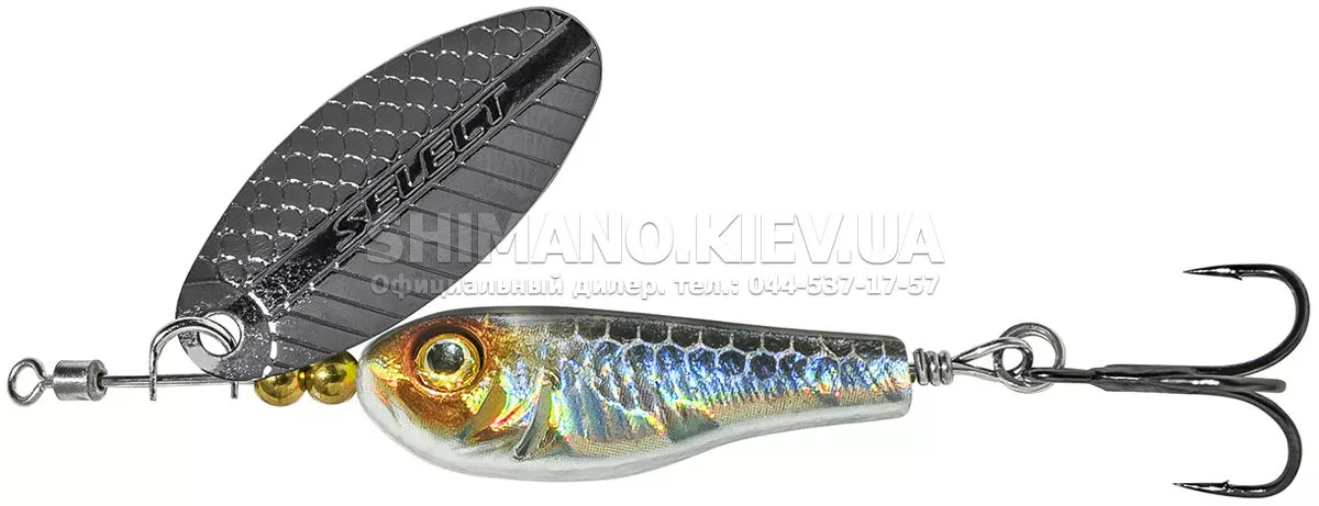 Блешня Select Heli-X - досконала оберталка для риболовлі на течії. Осердя зроблено у формі малька, воно виготовлене з важкого металу і має асиметричну форму. Завдяки цьому приманка добре тримає течію і її можна закинути досить далеко.