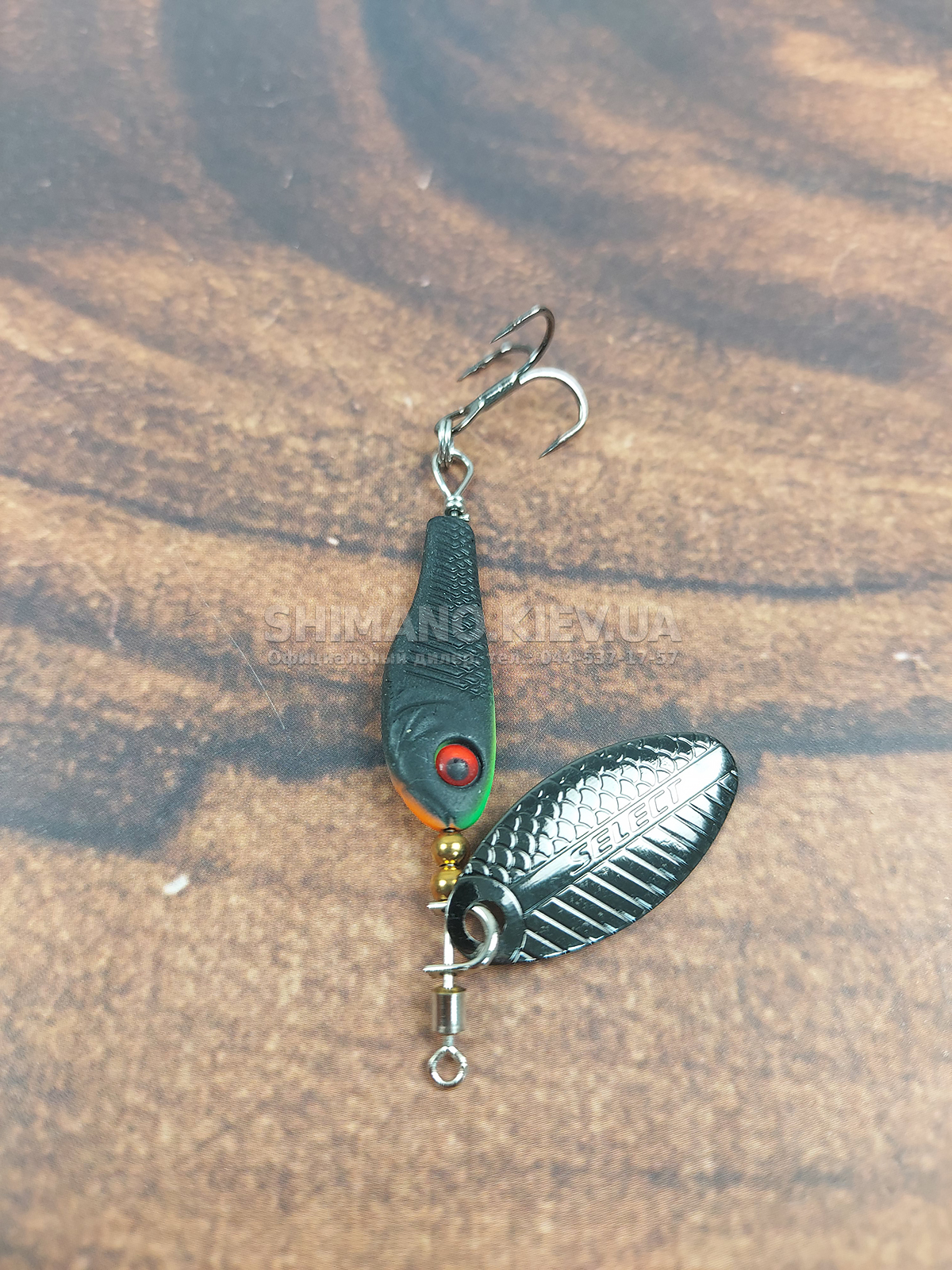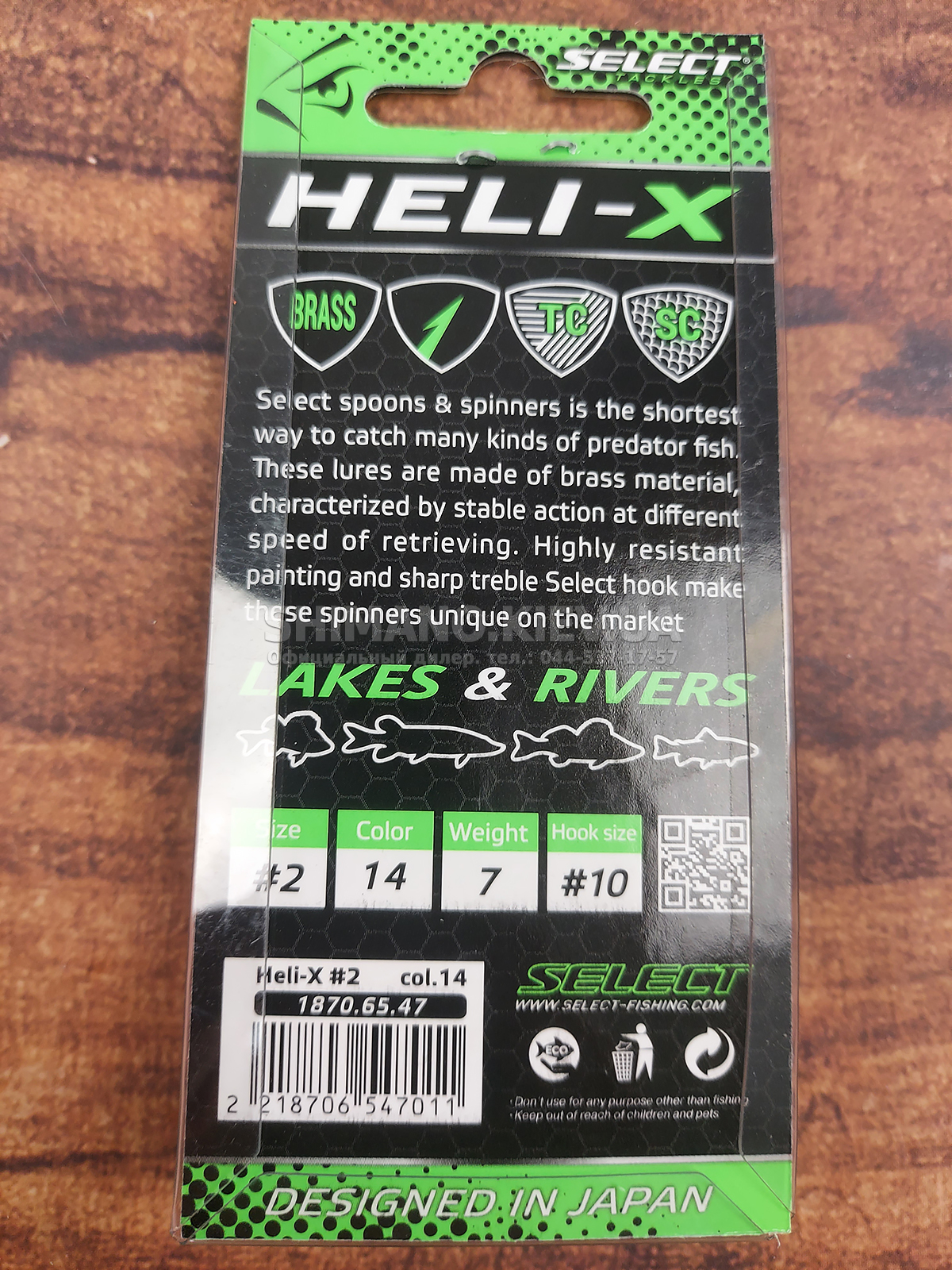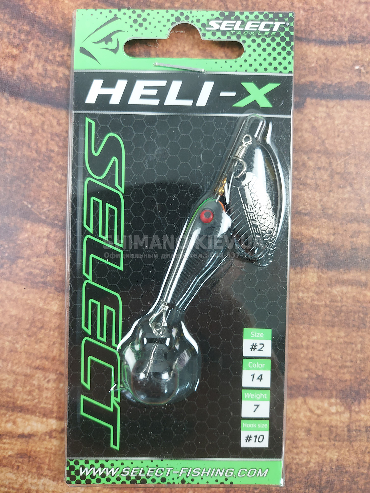 Блешня Select Heli-X - досконала оберталка для риболовлі на течії. Осердя зроблено у формі малька, воно виготовлене з важкого металу і має асиметричну форму. Завдяки цьому приманка добре тримає течію і її можна закинути досить далеко. Замість передньої петлі на вісі блешні вмонтований вертлюжок, який разом з асиметричним сердечником максимально зменшує закручування шнура під час риболовлі. Пелюстка має рельєфну текстуру у вигляді луски риби, що створює у воді додаткові привабливі відблиски. Конструкція цієї вертушки дозволяє використовувати її не тільки на течії. Heli-X швидко включається у роботу навіть у стоячій воді, та навіть більше, її можна проводити на досить повільній швидкості, що дуже подобається пасивному хижакові. Основні трофеї цієї блешні: окунь, щука, головень, жерех і в`язь, а також форель і харіус, якщо вони є у водоймі. Select Heli-X доступний у 5-ти розмірах – від 3 до 14г, тому підійде під снасті різної потужності.