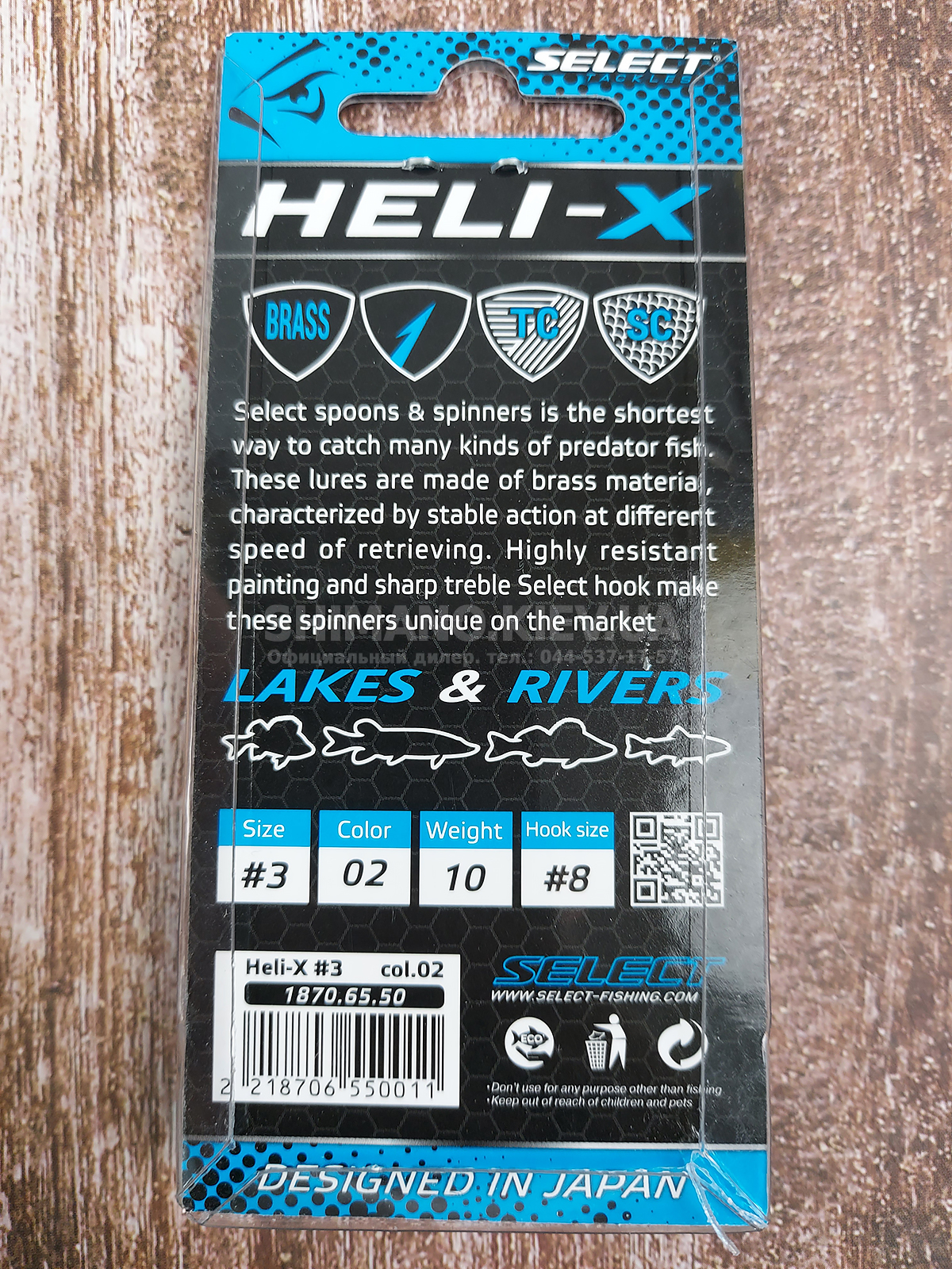 Select Heli-X доступний у 5-ти розмірах – від 3 до 14г, тому підійде під снасті різної потужності.
