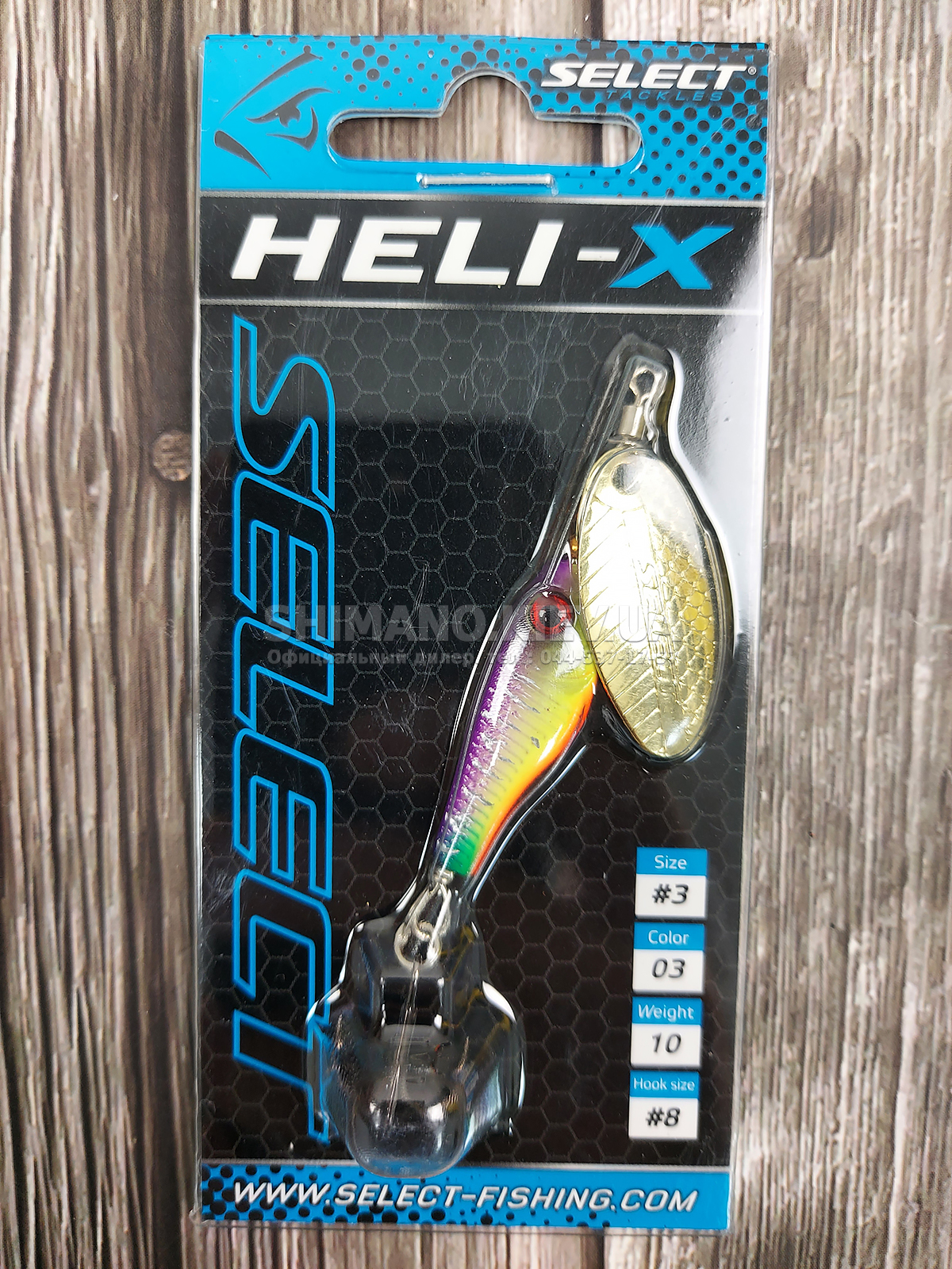 Блешня Select Heli-X - досконала оберталка для риболовлі на течії. Осердя зроблено у формі малька, воно виготовлене з важкого металу і має асиметричну форму. Завдяки цьому приманка добре тримає течію і її можна закинути досить далеко.