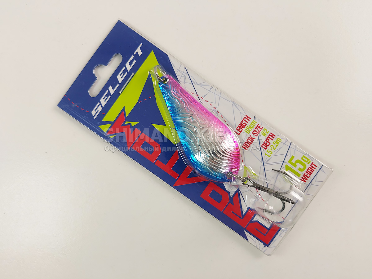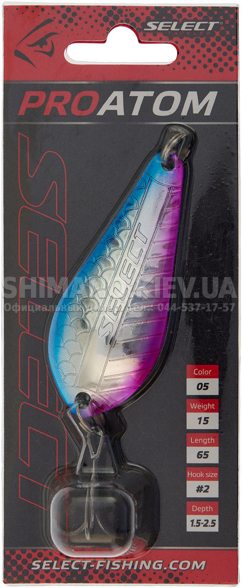 Блешня Select ProAtom - коливалка дуже популярної форми, яка часто використовується для лову щуки. Завдяки своїй унікальній власній грі на рівномірній проводці вона добре ловить не тільки "зубасту", але й іншу хижу рибу. Для того, щоб досягти успіху, достатньо проводити блешню в середньому темпі, при цьому вона стабільно приноситиме результат. Хоча доповнення пауз та різних ривків допоможуть привнести різноманітність у гру та збільшити кількість клювань.