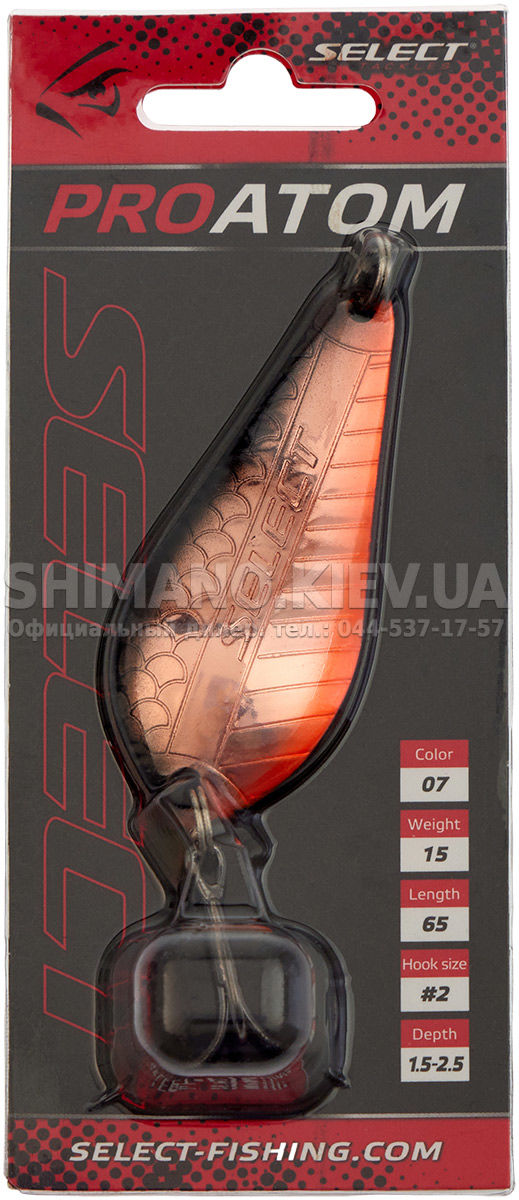 Блешня Select ProAtom випускається масою 15 грамів та рекомендована для риболовлі на глибинах 1.5-2.5 метра.
