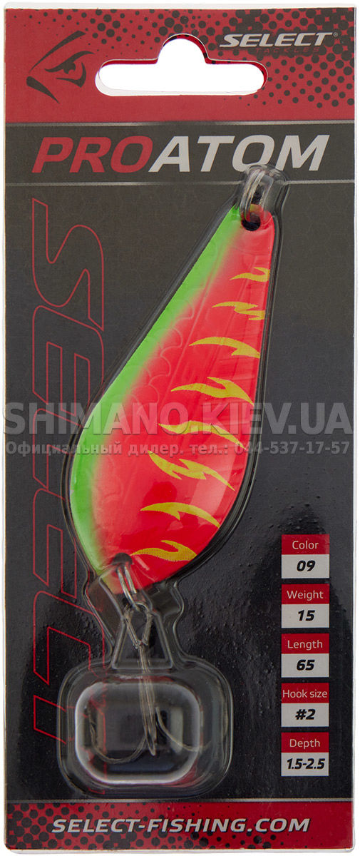 Блешня Select ProAtom - коливалка дуже популярної форми, яка часто використовується для лову щуки. Завдяки своїй унікальній власній грі на рівномірній проводці вона добре ловить не тільки "зубасту", але й іншу хижу рибу. Для того, щоб досягти успіху, достатньо проводити блешню в середньому темпі, при цьому вона стабільно приноситиме результат. Хоча доповнення пауз та різних ривків допоможуть привнести різноманітність у гру та збільшити кількість клювань.