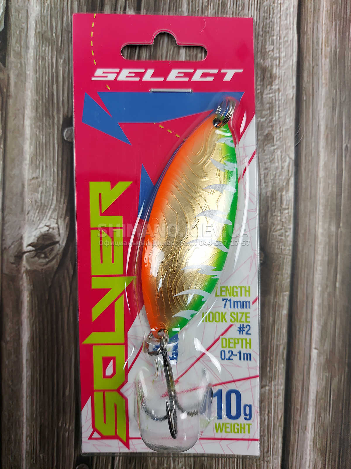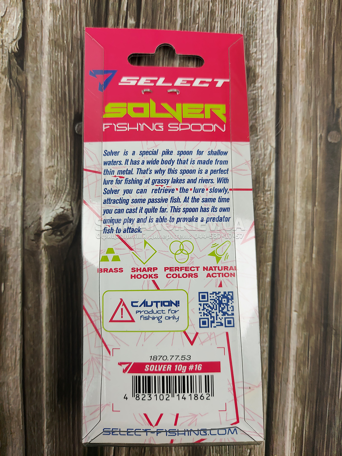 Блешня Select Solver - спеціалізована коливалка для лову щуки на неглибоких водоймах, що частково заростають травою. Завдяки продуманому балансу між формою, товщиною металу і габаритами приманки, вона має унікальні властивості для лову в складних умовах. Помірна парусність блешні дозволяє повільно проводити її над водоростями і водночас вона досить добре летить під час закидання. Ця коливалка має унікальну власну гру, яка приваблює щуку будь-якого розміру - від невеликого "шнурка", до трофейних екземплярів.