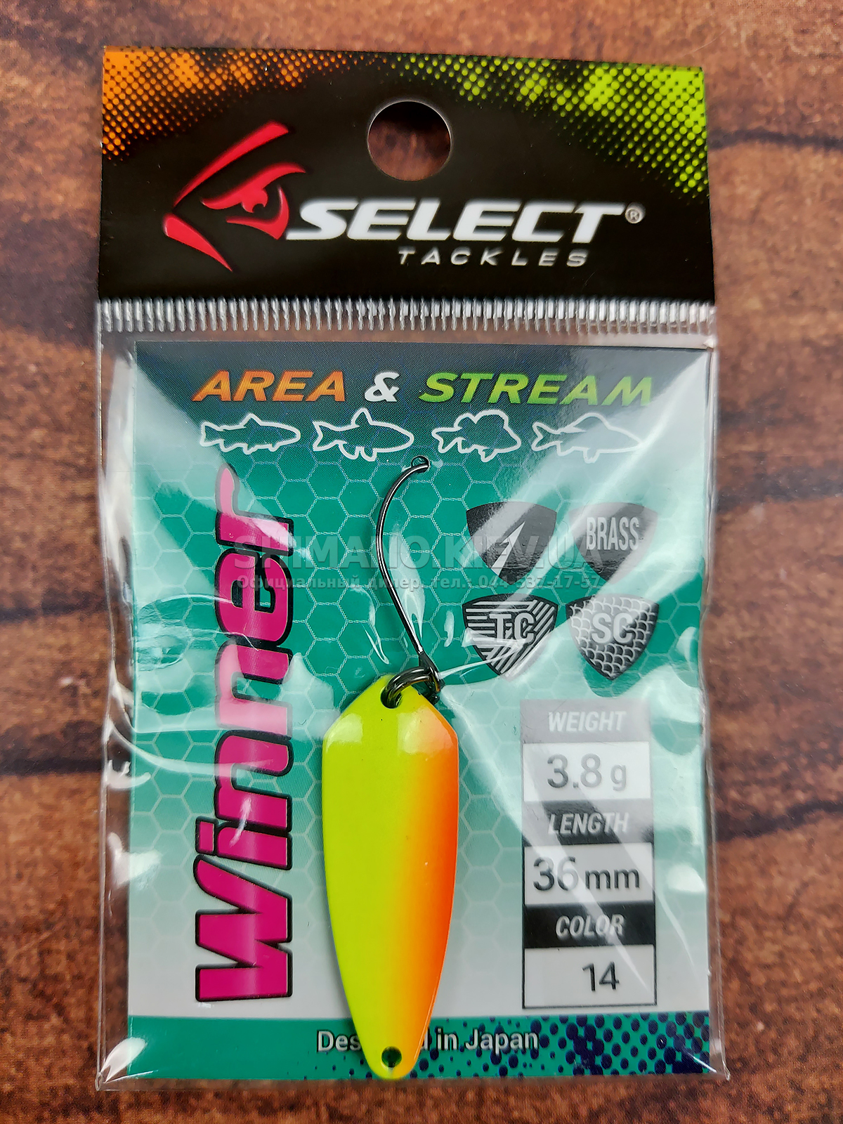 Select Winner – одна з найпопулярніших моделей мікроколебалок серед спортсменів та любителів форелевого лову. Блешня не «перекидається» після закидання, завдяки чому летить точно і далеко, дозволяючи ловити форель на дистанції, недосяжній для широкотілих блешень. Має оригінальну гру, яка здатна провокувати дуже пасивну рибу. Все що залишається рибалці - це вгадати з кольором Select Winner і насолоджуватися потужними клюванням плямистої красуні.