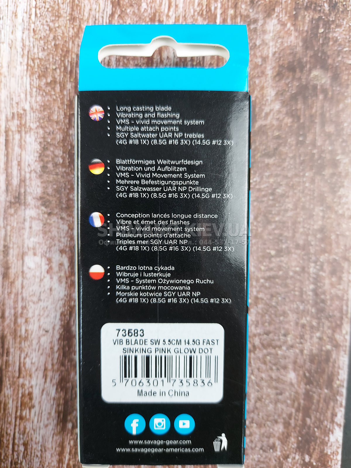 Цикада Savage Gear Vib Blade - тонуча металева приманка, яка використовується для облову придонних шарів водойми. Вона створює потужну вібрацію на проводці і мерехтить своїми пласкими боками, привертаючи увагу риби з великої відстані. Три точки кріплення дозволяють змінювати інтенсивність гри - чим далі від голови закріплена застібка, тим активніше буде гра. Маючи компактне тіло, блешня добре летить під час закидання, при цьому вплив вітру на її далекобійність має мінімальне значення. Vib Blade оснащена двома якісними трійниками, які не дозволять рибі безкарно атакувати приманку.