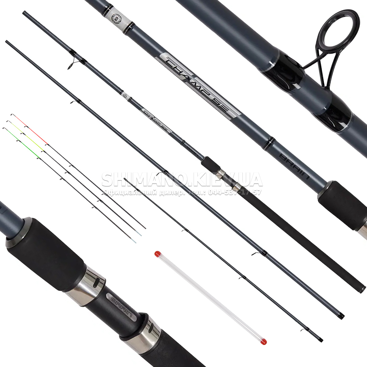 Brain Champ SE Feeder — це базова серія фідерних вудилищ, створена для тих, хто хоче почати знайомство з фідерною ловлею або шукає бюджетне рішення без компромісів у якості. Виготовлені з сучасного композитного матеріалу корейського виробництва, ці вудилища поєднують у собі міцність, гнучкість та приємну легкість.