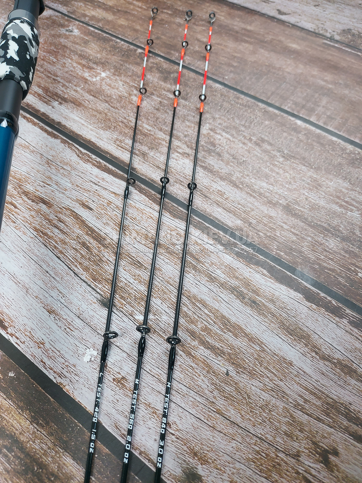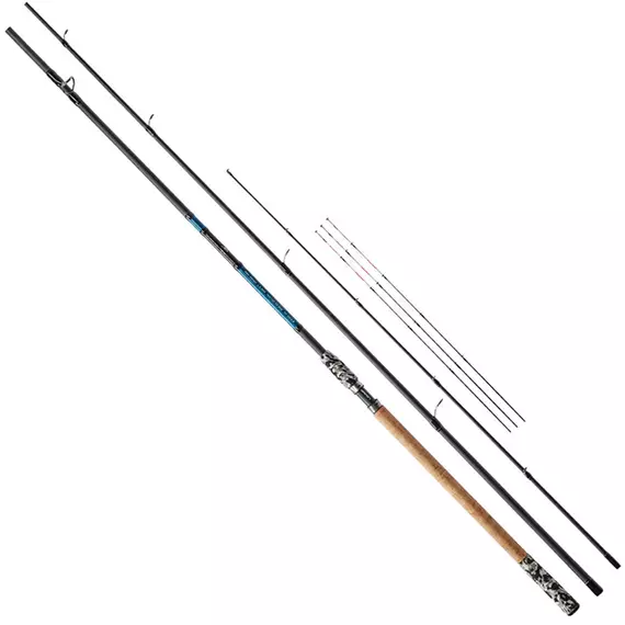 У комплекті — карбонові вершинки різної жорсткості, що дозволяє адаптувати вудилище до різних умов: від лову на стоячій воді до риболовлі на течії з годівницями різної ваги.