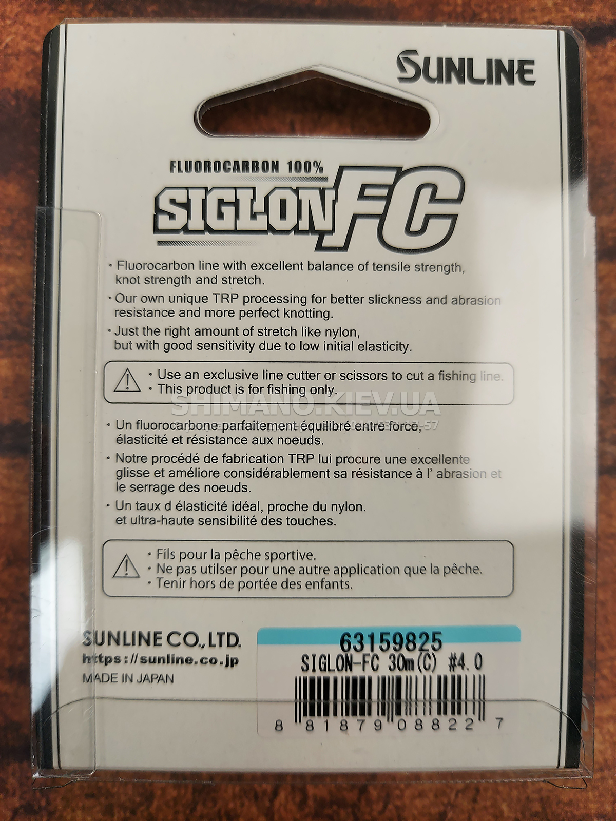 Спеціальний повідковий флюорокарбон. Характеризується підвищеною жорсткістю, але водночас максимальною зносостійкістю. Широкий спектр діаметрів дозволить підібрати флюорокарбон як для ультралайтового повідця для лову обережного окуня в прозорій воді, так і повідець, який зможе більшою мірою протистояти щучим зубам. Завдяки зручним розмотуванням (30 і 50м) та демократичній ціні, Siglon FC швидко завоював популярність у наших рибалок.