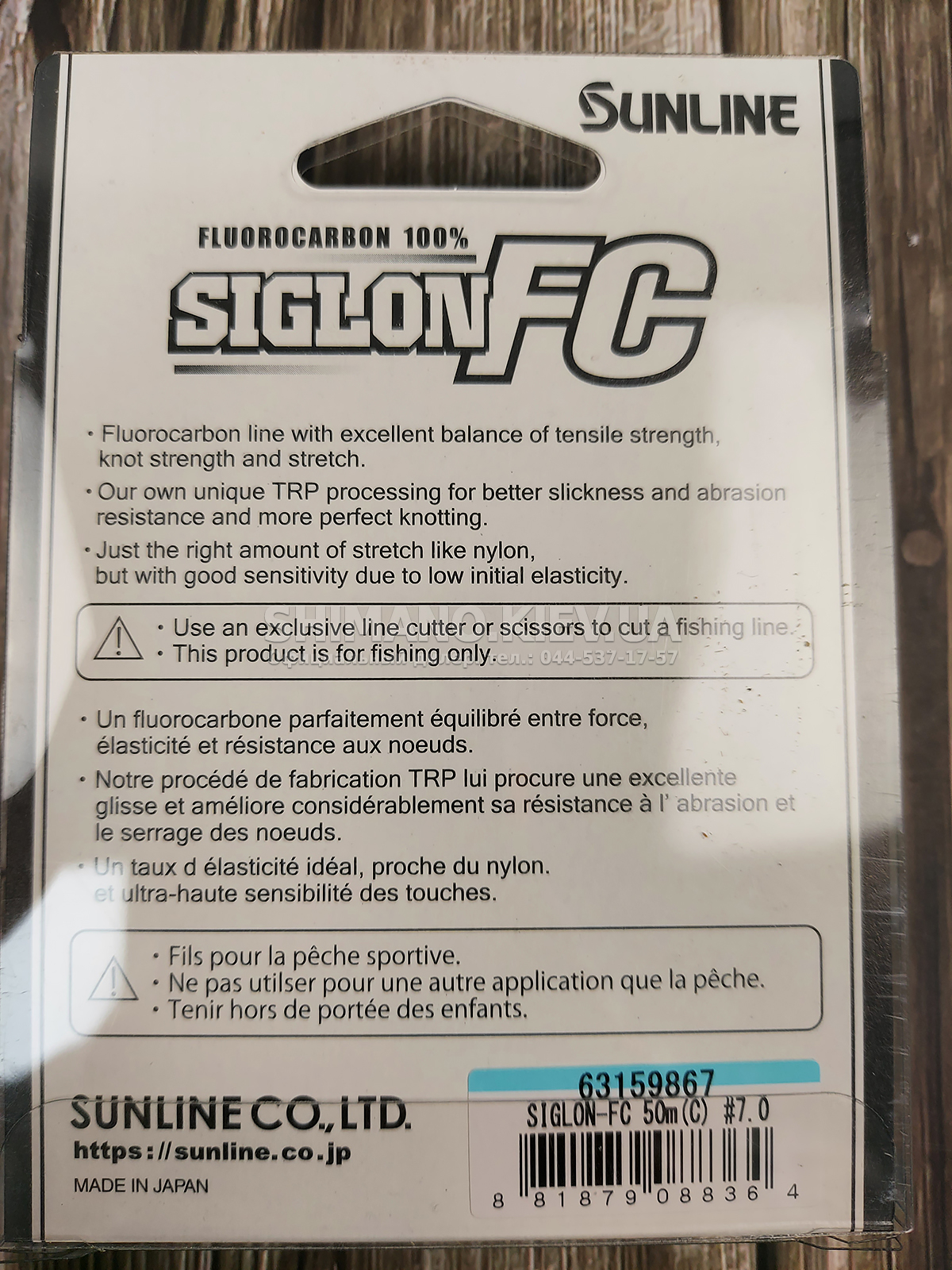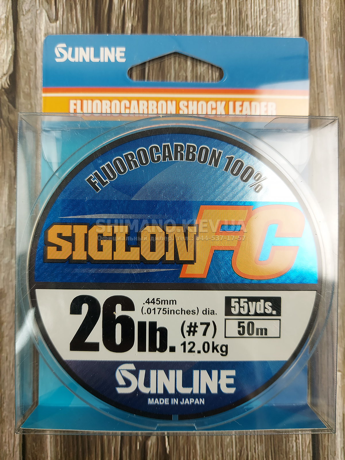 Спеціальний повідковий флюорокарбон. Характеризується підвищеною жорсткістю, але водночас максимальною зносостійкістю. Широкий спектр діаметрів дозволить підібрати флюорокарбон як для ультралайтового повідця для лову обережного окуня в прозорій воді, так і повідець, який зможе більшою мірою протистояти щучим зубам. Завдяки зручним розмотуванням (30 і 50м) та демократичній ціні, Siglon FC швидко завоював популярність у наших рибалок.