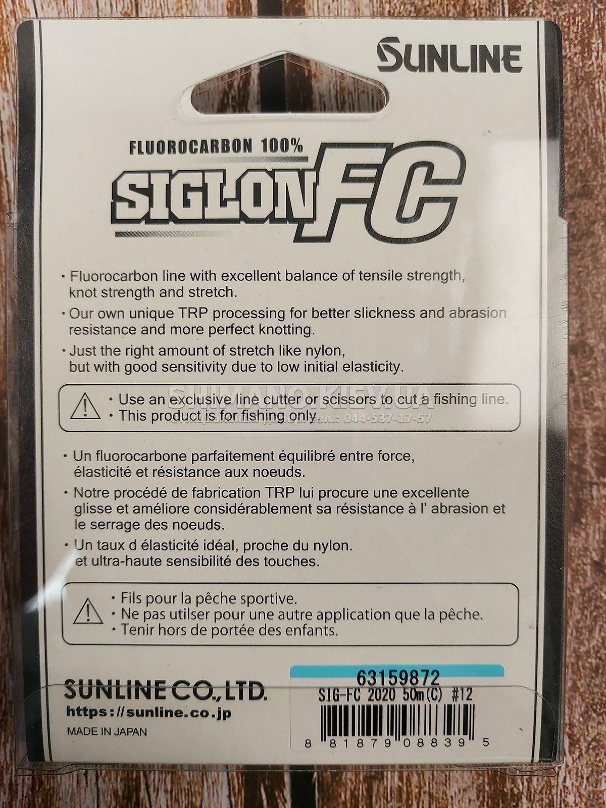 Спеціальний повідковий флюорокарбон. Характеризується підвищеною жорсткістю, але водночас максимальною зносостійкістю. Широкий спектр діаметрів дозволить підібрати флюорокарбон як для ультралайтового повідця для лову обережного окуня в прозорій воді, так і повідець, який зможе більшою мірою протистояти щучим зубам. Завдяки зручним розмотуванням (30 і 50м) та демократичній ціні, Siglon FC швидко завоював популярність у наших рибалок.