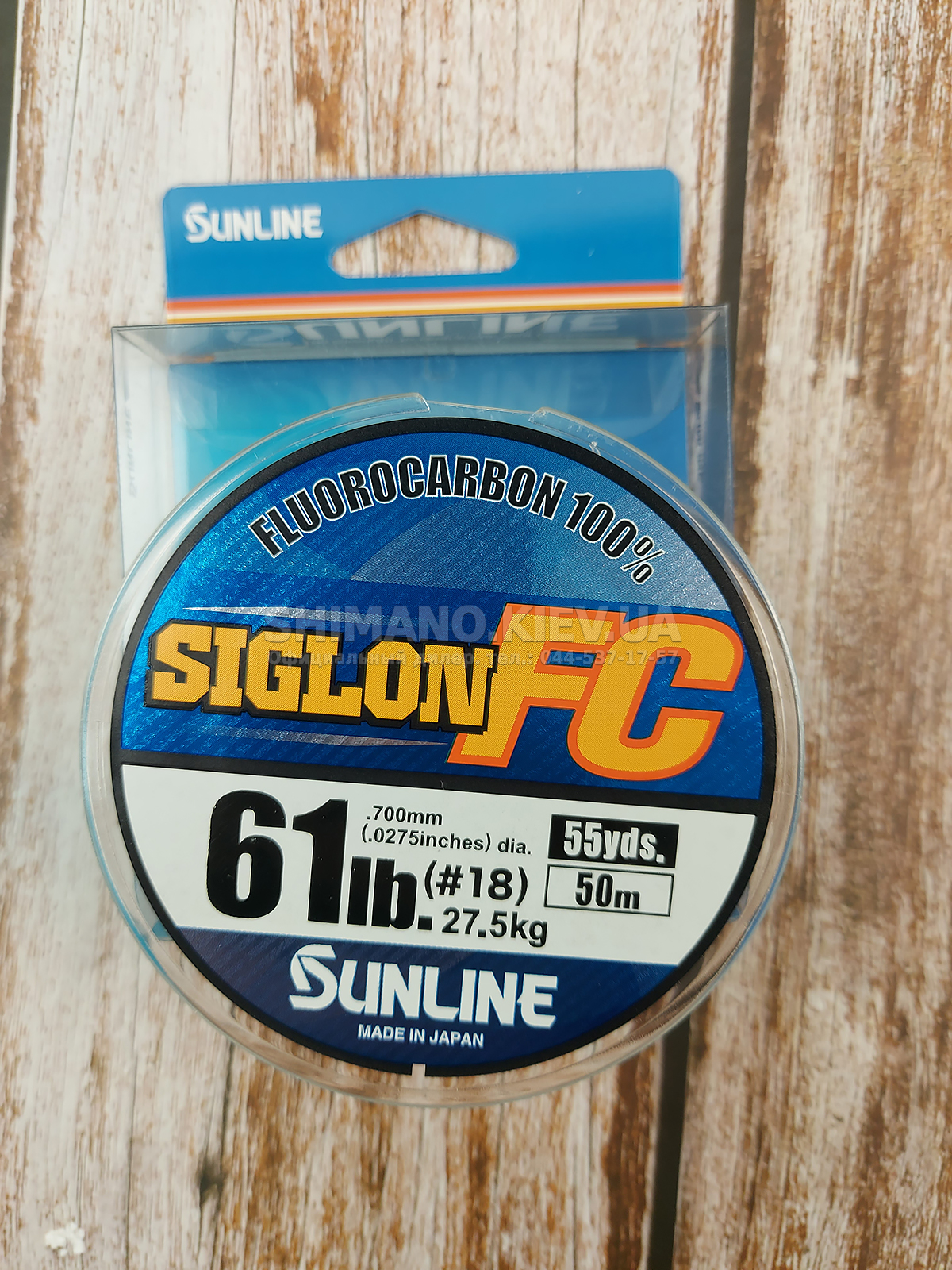 Спеціальний повідковий флюорокарбон. Характеризується підвищеною жорсткістю, але водночас максимальною зносостійкістю. Широкий спектр діаметрів дозволить підібрати флюорокарбон як для ультралайтового повідця для лову обережного окуня в прозорій воді, так і повідець, який зможе більшою мірою протистояти щучим зубам. Завдяки зручним розмотуванням (30 і 50м) та демократичній ціні, Siglon FC швидко завоював популярність у наших рибалок.