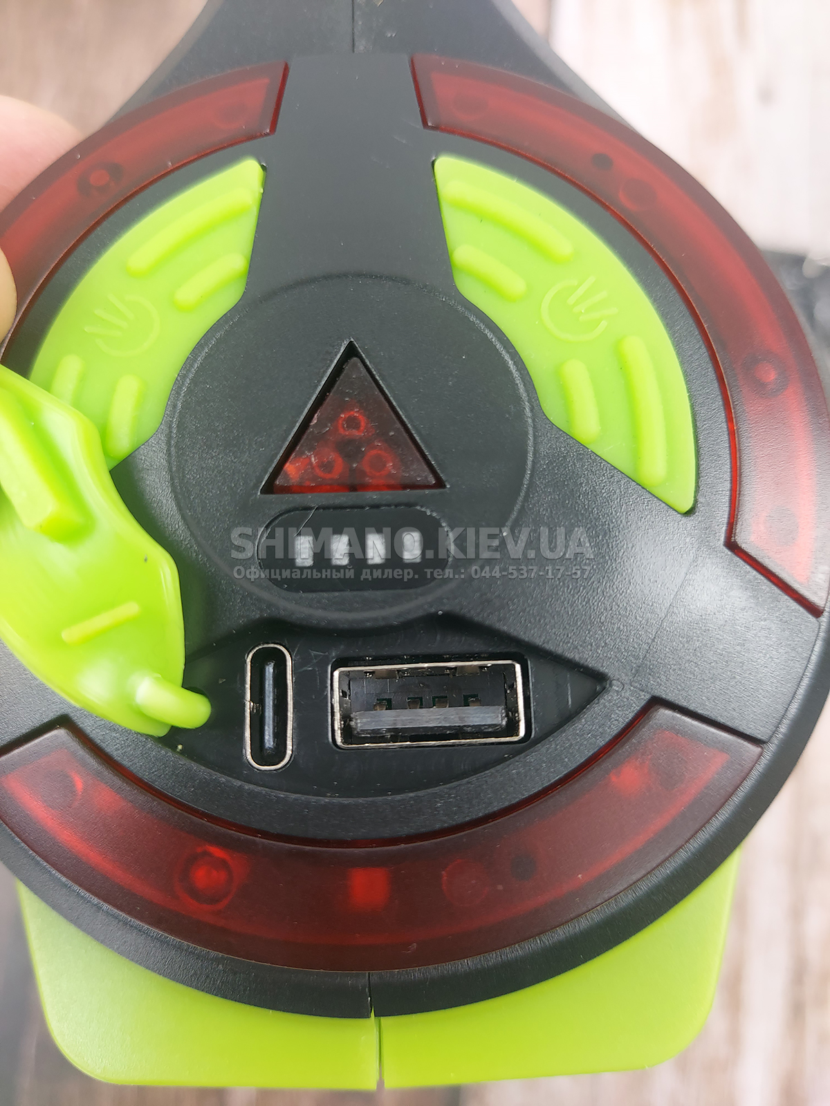 Крім того, на торці є трикутна кнопка, яка дозволяє включити режим з червоними діодами, який може бути використаний як сигнальний маячок.