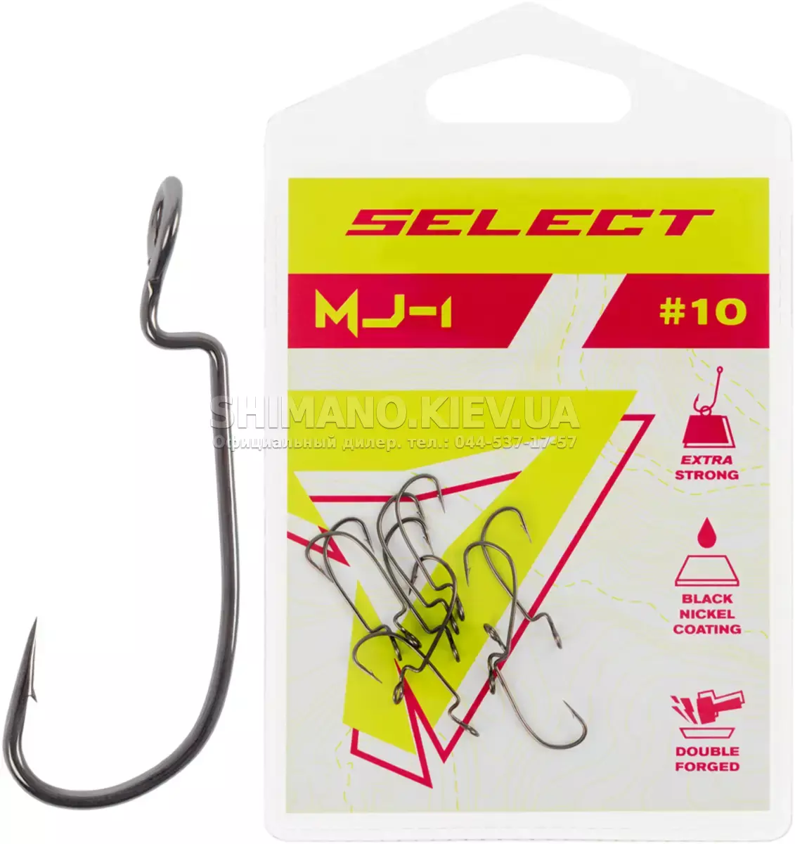 Гачок Select MJ-1 - офсетник, розроблений для мікроджігової риболовлі. Випускається в маленьких розмірах для оснащення невеликих твістерів, віброхвостів і черв’яків, що найчастіше використовуються для ультралайтового лову. Гачки виконані з високовуглецевої сталі з використанням лазерної заточки жала, що робить їх гострими і міцними. Особливістю даної моделі є збільшений діаметр вушка, завдяки чому офсет вільно рухається на грузилі, незалежно від товщини використовуваного дроту.
