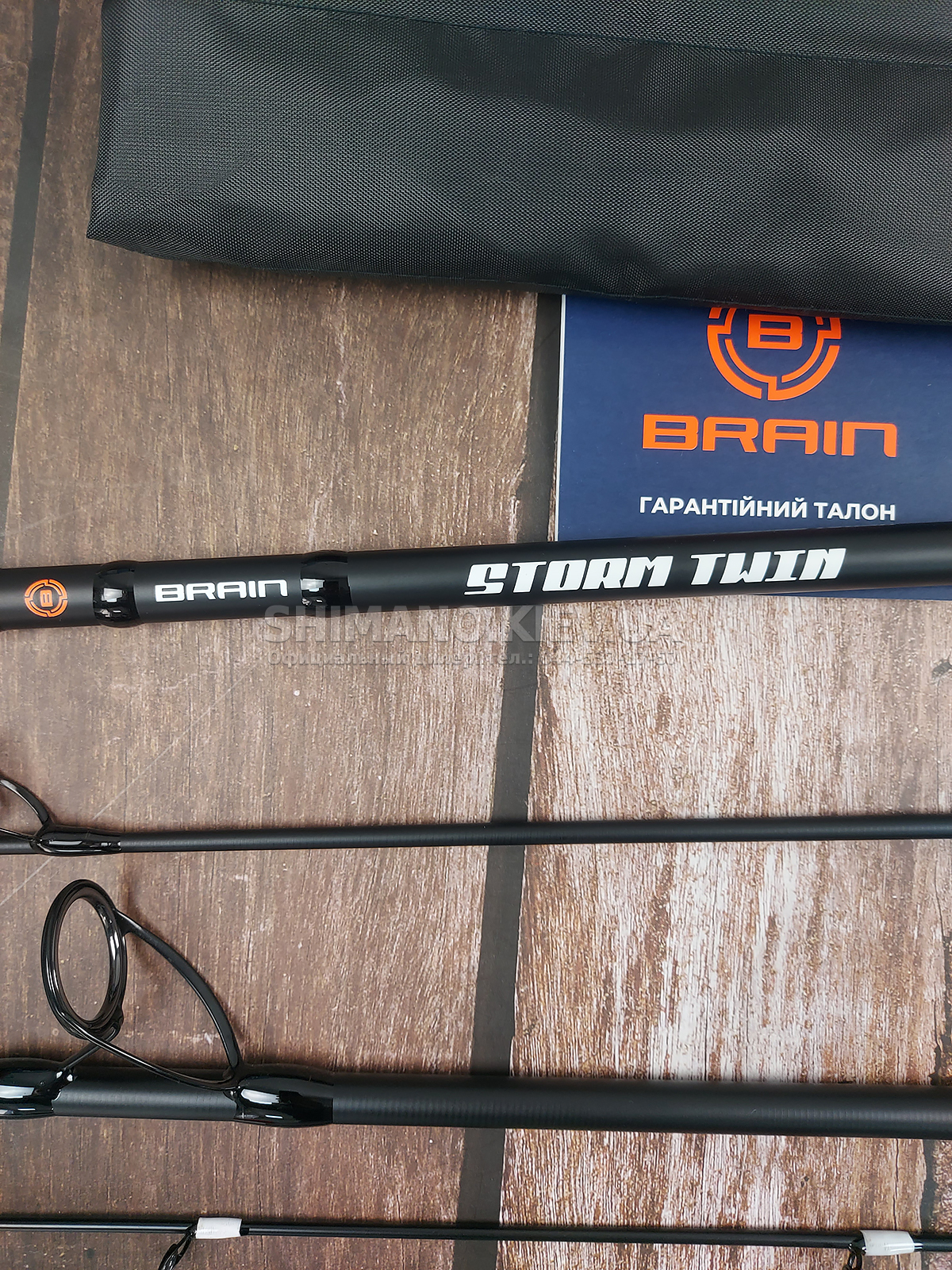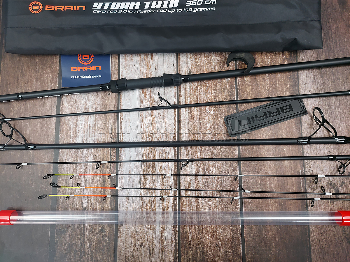 Вудилище фідерне Brain Storm Twin має універсальну конструкцію, яка дозволяє використовувати його як фідер, так і як короповик. Для цього в комплекті йдуть 4 квівертипи різної жорсткості під різні умови лову, а також коропова вершинка. В цілому, вудилище дуже потужне, жорстке і далекобійне, що необхідно для закидання важких оснасток та виважування великої та сильної риби.