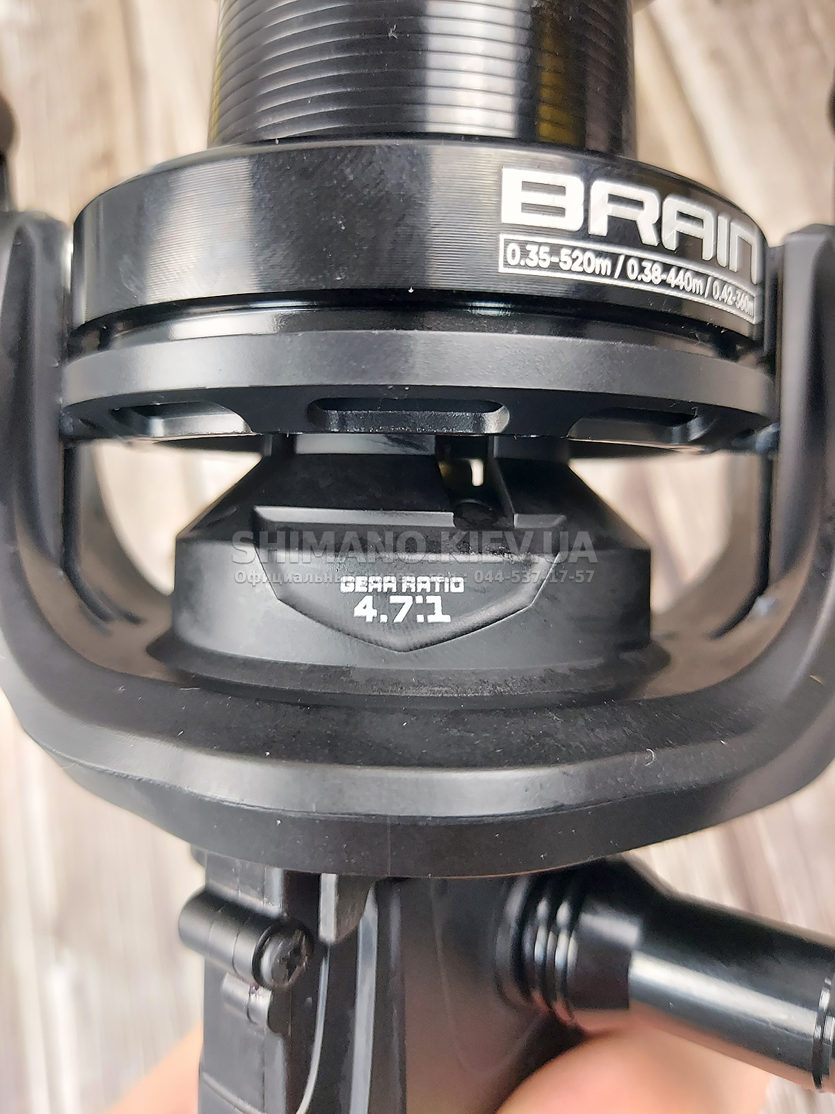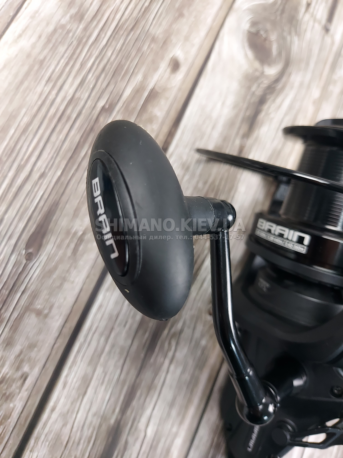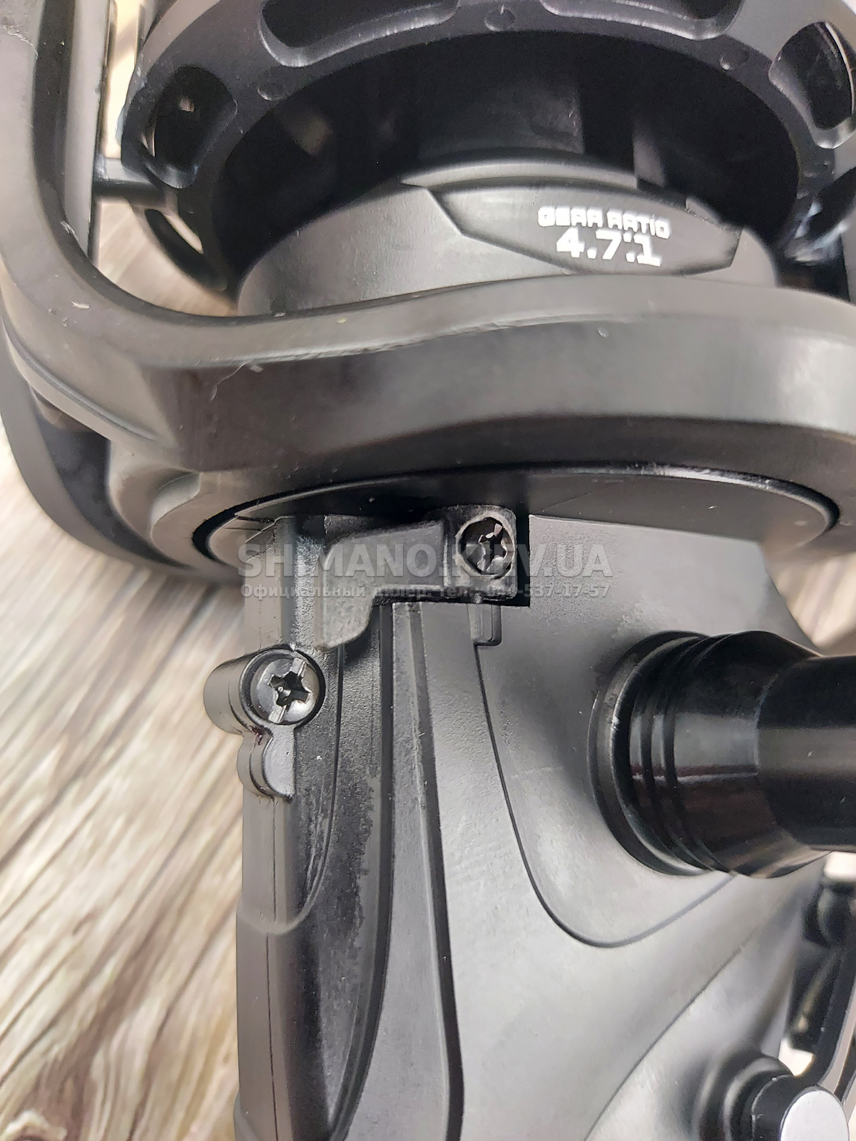 Щоб уникнути появи люфтів у вузлі кріплення ручки, вона вкручується безпосередньо у вісь ведучої шестерні. Об'ємний гумовий кноб дозволяє робити зручний хват під час тривалого виведення великої риби.