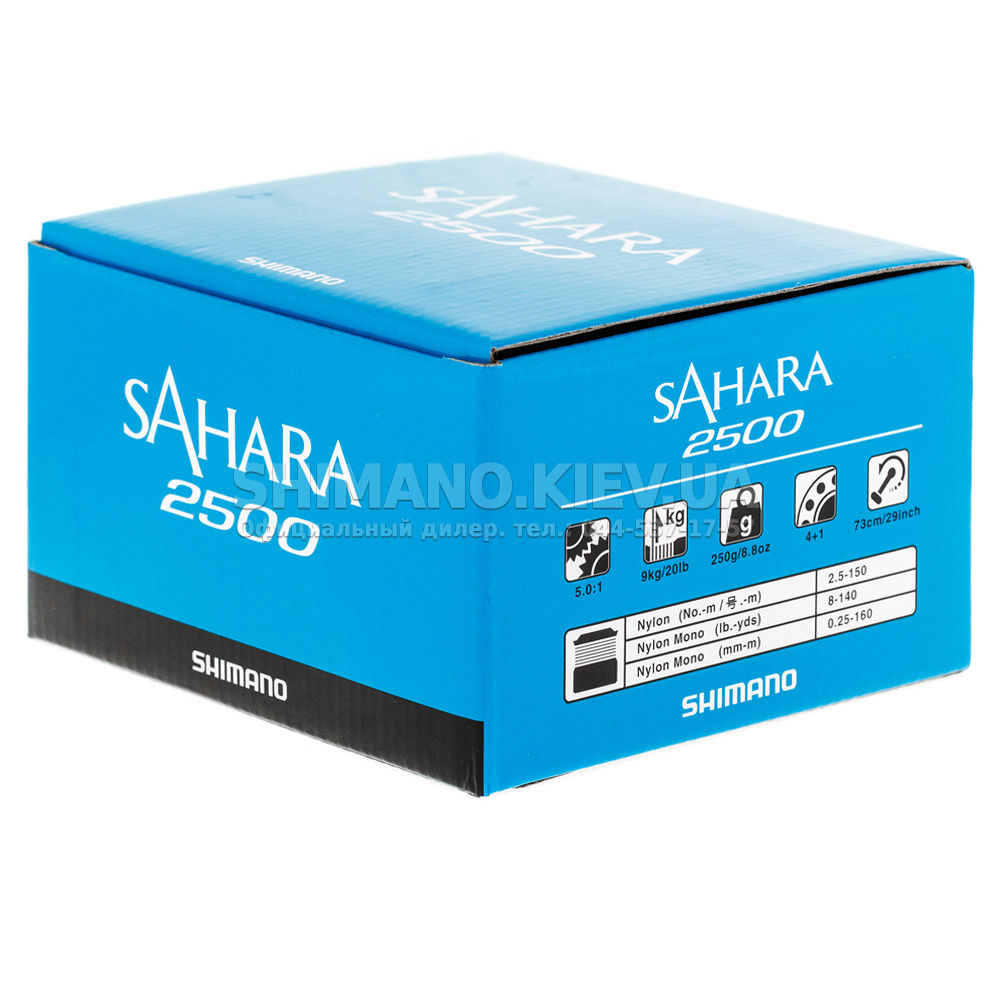 Котушка SHIMANO SAHARA 2500 FI (SH2500FI) - спінінгова котушка з переднім фрикціоном від японської компанії SHIMANO (Шимано) з корпусом з міцного та легкого матеріалу XT-7 із застосуванням технології "G FREE BODY" та AR-C-шпулів із холоднокованого алюмінію. Належить до сімейства котушок, створених із застосуванням концепції "P4". Забезпечена новим міцним та легким приводом "HAGANE GEAR", системою лісоукладання "Varispeed II" (Fluidrive II), шестернями "X-SHIP", системою блокування зворотного ходу другого покоління. Містить чотири екрановані шарикопідшипники з нержавіючої сталі плюс 1 роликовий підшипник. (Модель 2017 року).