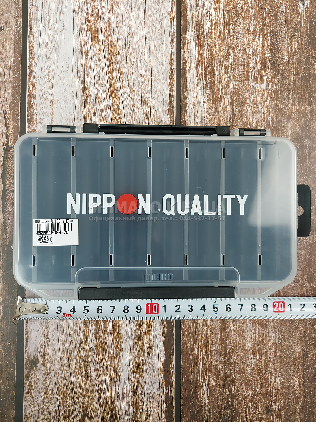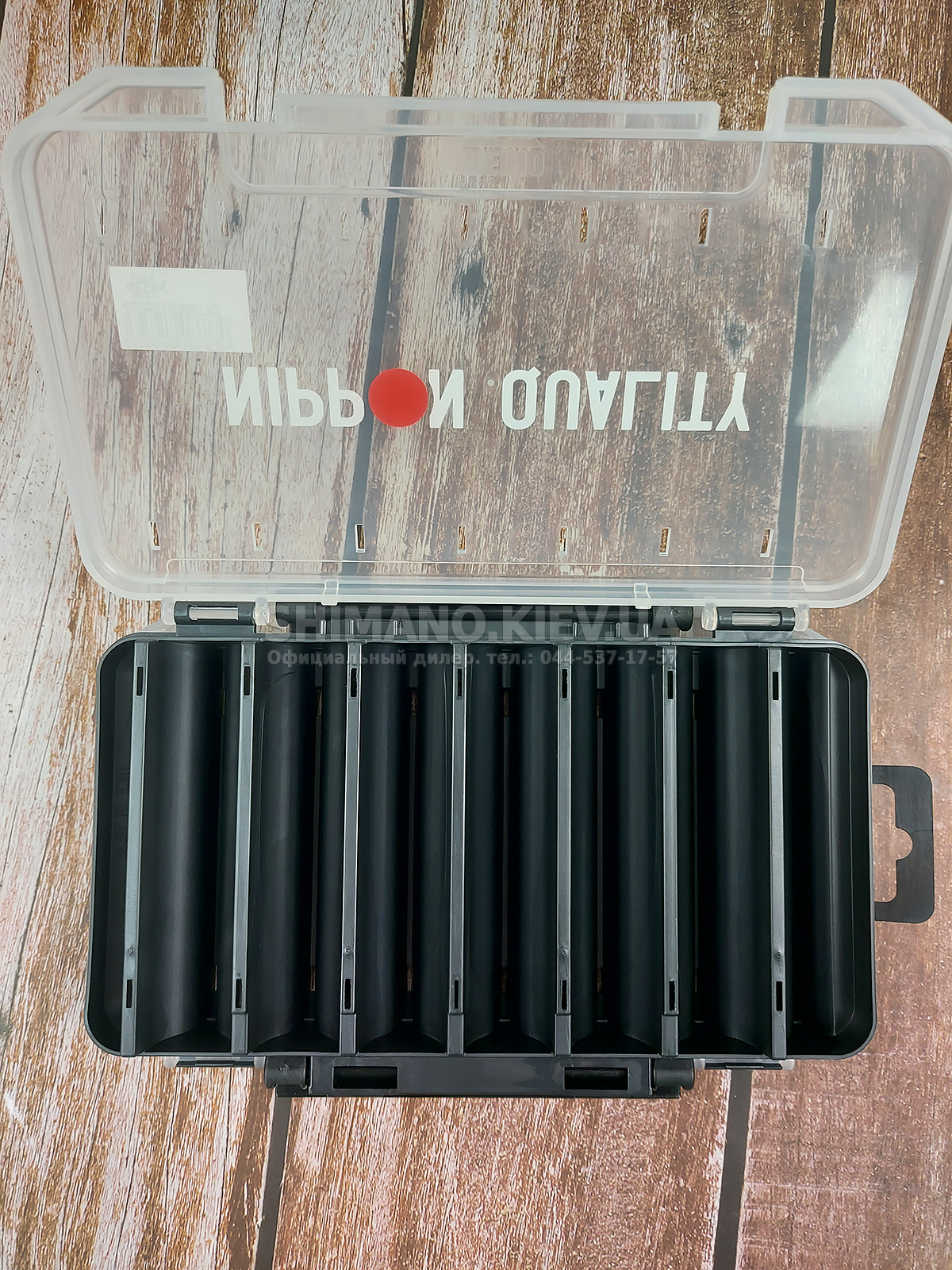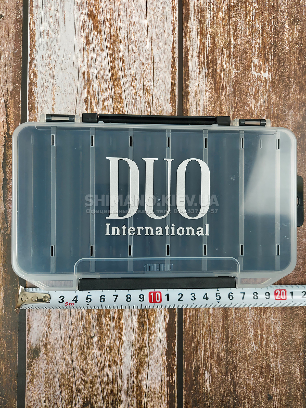 Коробка Коробка DUO Reversible Box – двостороння коробка для воблерів. Покликана максимально мінімізувати простір. Виготовлена із якісного міцного пластику, який захищає приманки від впливу зовнішнього середовища. Прорізи всередині коробки дозволяють вільно виходити воді, тим самим вміст завжди залишатиметься сухим.