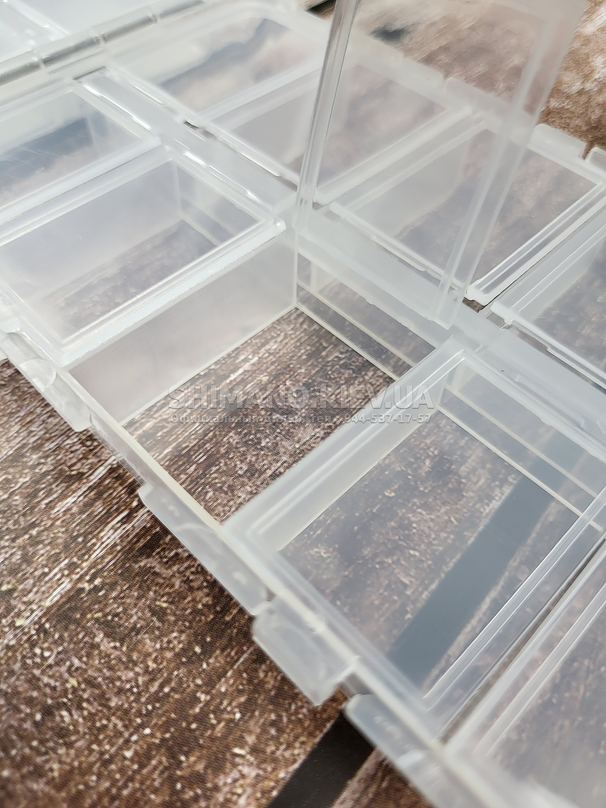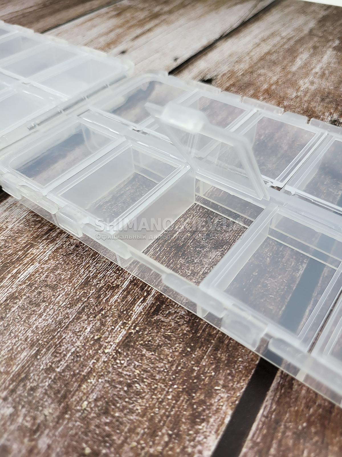 Коробка Select Lure Box максимально пристосована для зберігання приманок і рибальських аксесуарів. Для її виробництва використаний практичний пластик, що витримує деякі ударні навантаження і не вступає в реакцію з різними силіконами. Широкий асортимент моделей різних габаритів і комбінацій внутрішніх відсіків, допоможе підібрати коробку для зберігання приманок практично будь-якого розміру.Коробка Select Lure Box SLHS-013 - складана двосекційна модель компактних розмірів, яка ідеально підходить для зберігання маленьких приманок, невеликих джиг-головок, карабінів і т.п. Кожен відсік має індивідуальну кришку, що запобігає розсипання вмісту. У складеному вигляді коробка може легко поміститися в кишеню рибальського жилета або поясну сумку під час ходового лову спінінгом.
