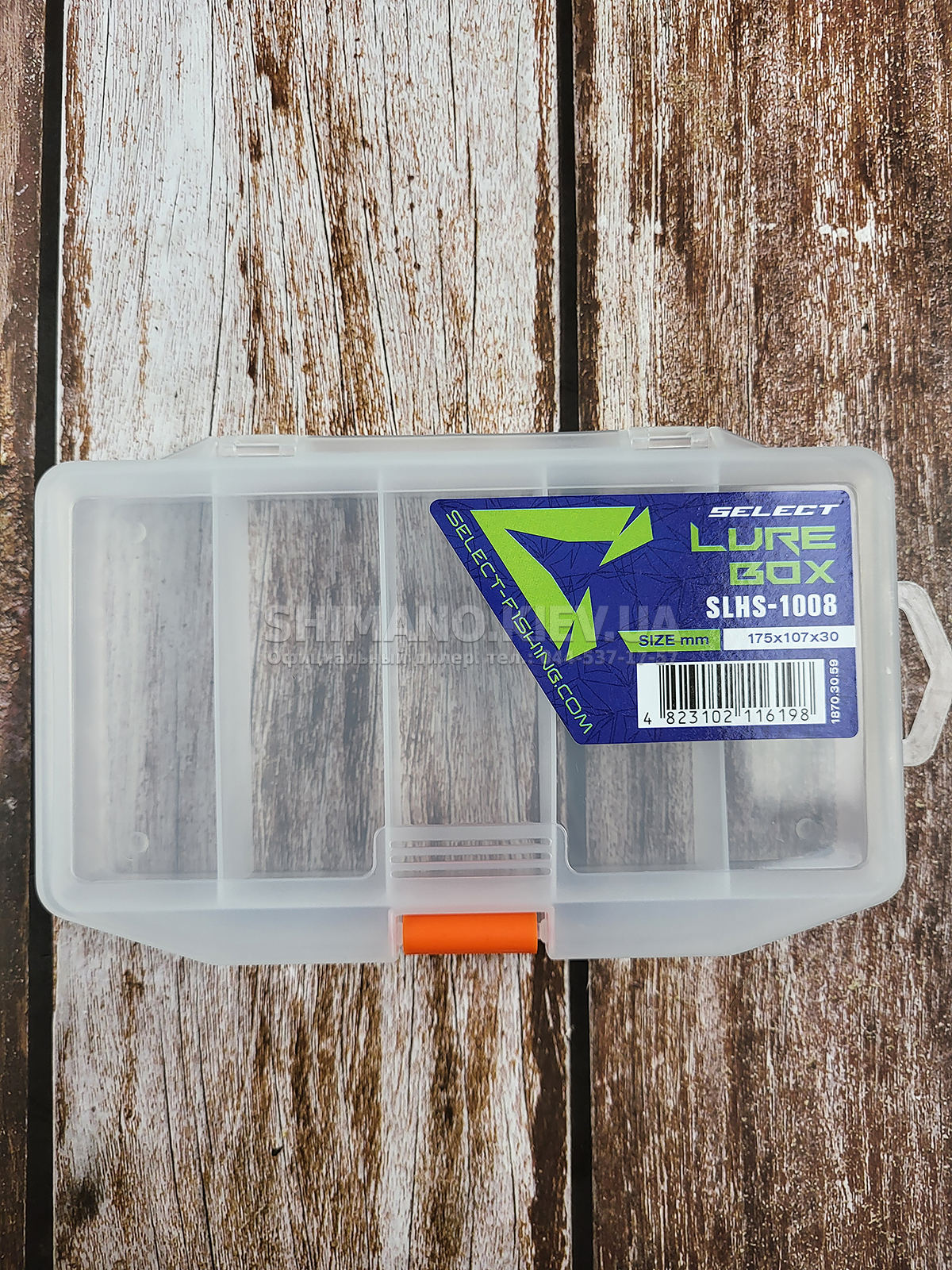 Коробка Select Lure Box максимально пристосована для зберігання приманок і рибальських аксесуарів. Для її виробництва використаний практичний пластик, що витримує деякі ударні навантаження і не вступає в реакцію з різними силіконами. Широкий асортимент моделей різних габаритів і комбінацій внутрішніх відсіків, допоможе підібрати коробку для зберігання приманок практично будь-якого розміру.Коробка Select Lure Box SLHS-1008 має 5 поперечних відсіків з фіксованими перегородками. Верхня кришка оснащена надійними поворотними петлями і довговічною застібкою. Коробка може використовуватися для зберігання невеликих спінінгових приманок, вантажів і джиг-головок. Завдяки своїм невеликим габаритам, коробка легко поміститься в кишеню рибальської куртки або жилета, а також в поясну сумку.