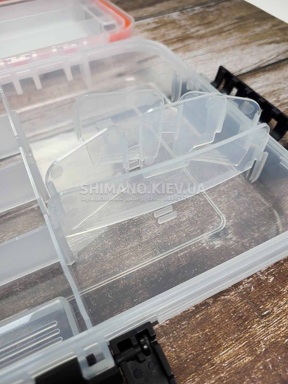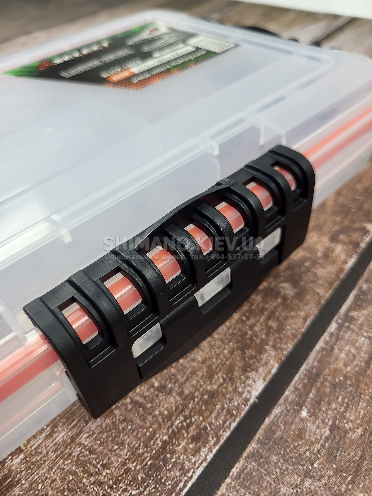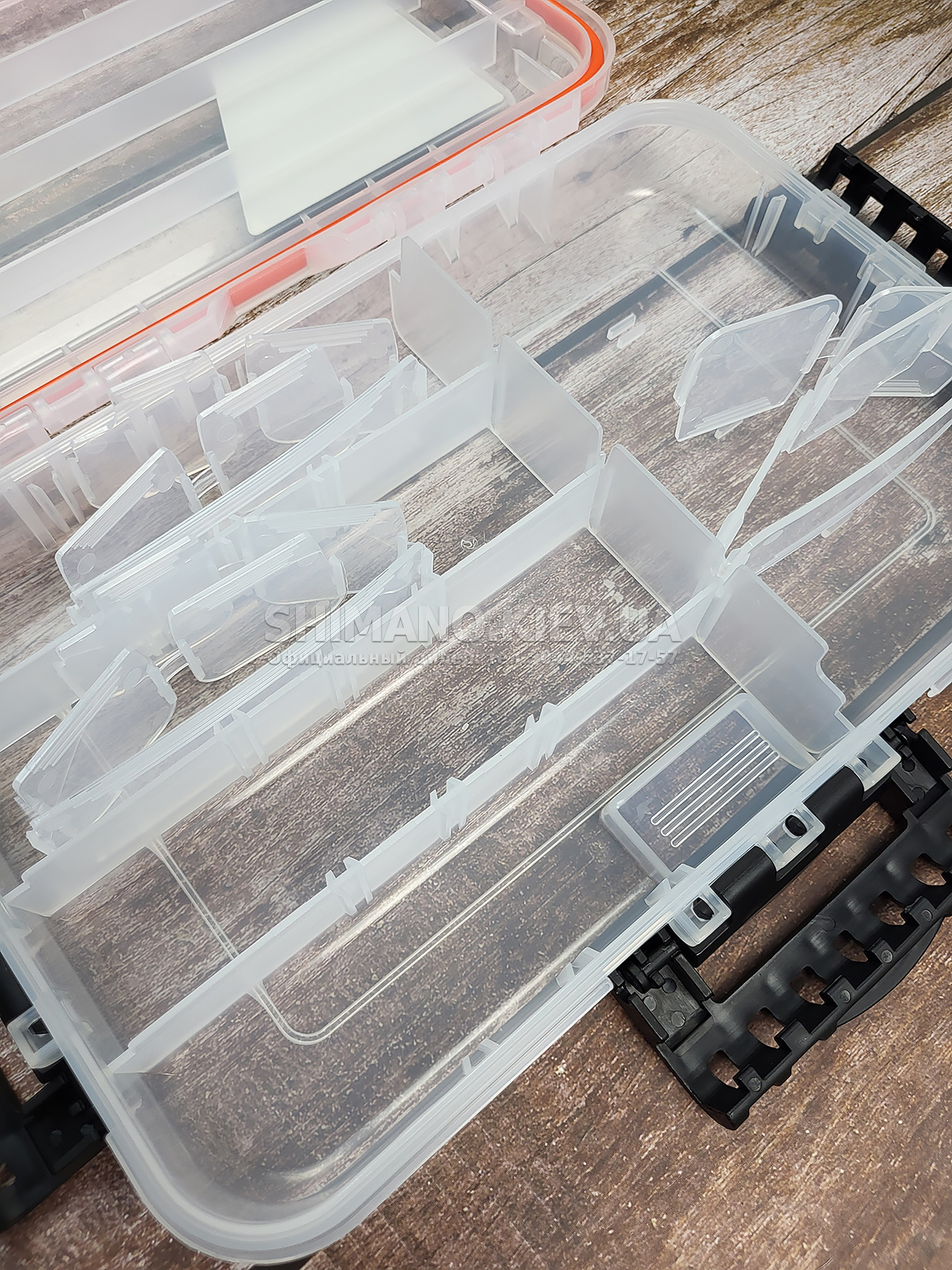 Коробка Select Lure Box максимально пристосована для зберігання приманок і рибальських аксесуарів. Для її виробництва використаний практичний пластик, що витримує деякі ударні навантаження і не вступає в реакцію з різними силіконами. Широкий асортимент моделей різних габаритів і комбінацій внутрішніх відсіків, допоможе підібрати коробку для зберігання приманок практично будь-якого розміру.Коробка Select Lure Box SLHX-1603 має водонепроникну конструкцію для захисту вмісту від намокання. Для забезпечення такої функції у кришці передбачений силіконовий ущільнювач, а застібки створюють щільну фіксацію з трьох сторін. Внутрішній простір коробки складається з чотирьох вузьких поздовжніх відсіків та одного широкого поперечного. Їх можна додатково розділяти під свої потреби наявними перегородками.