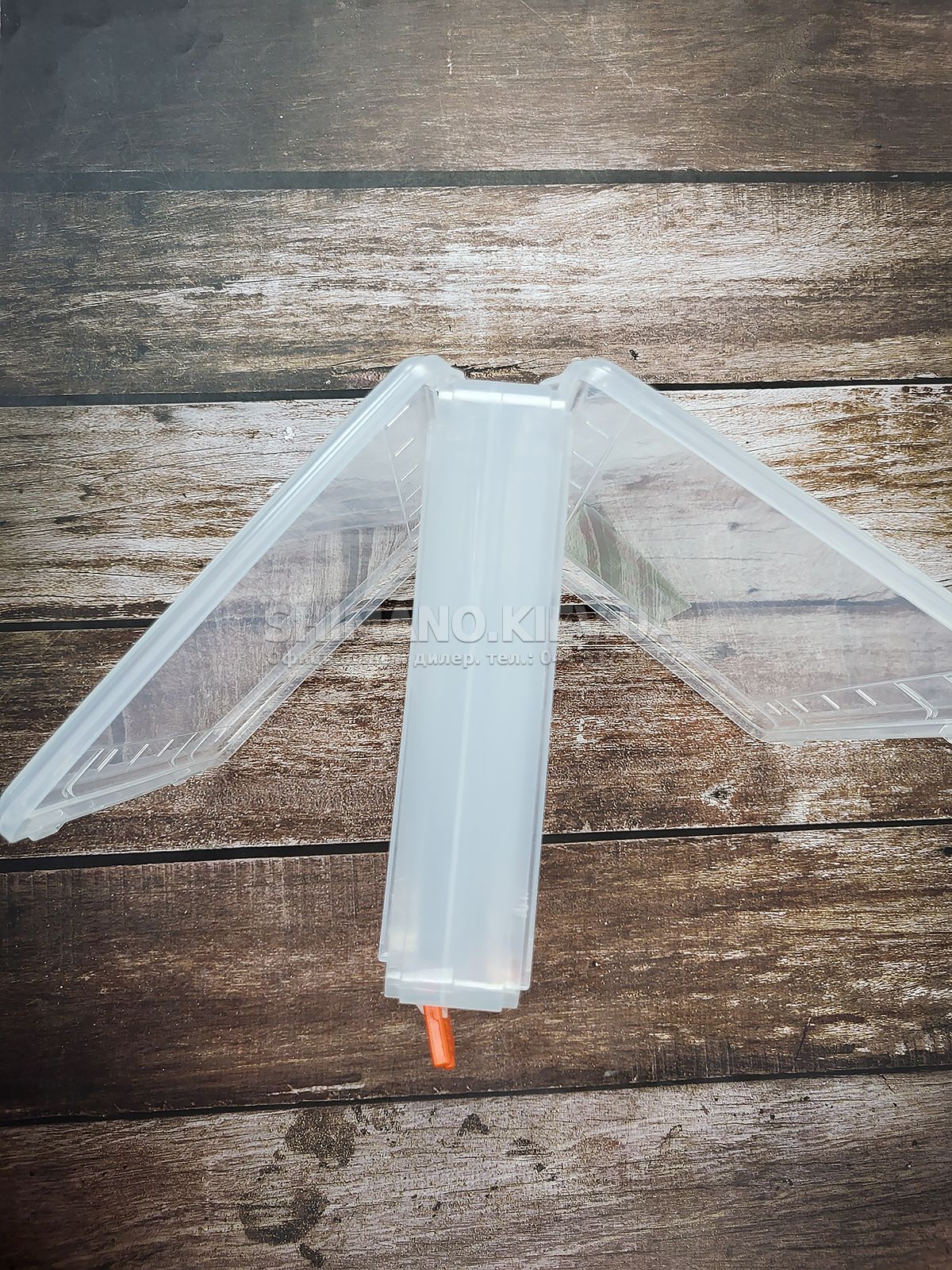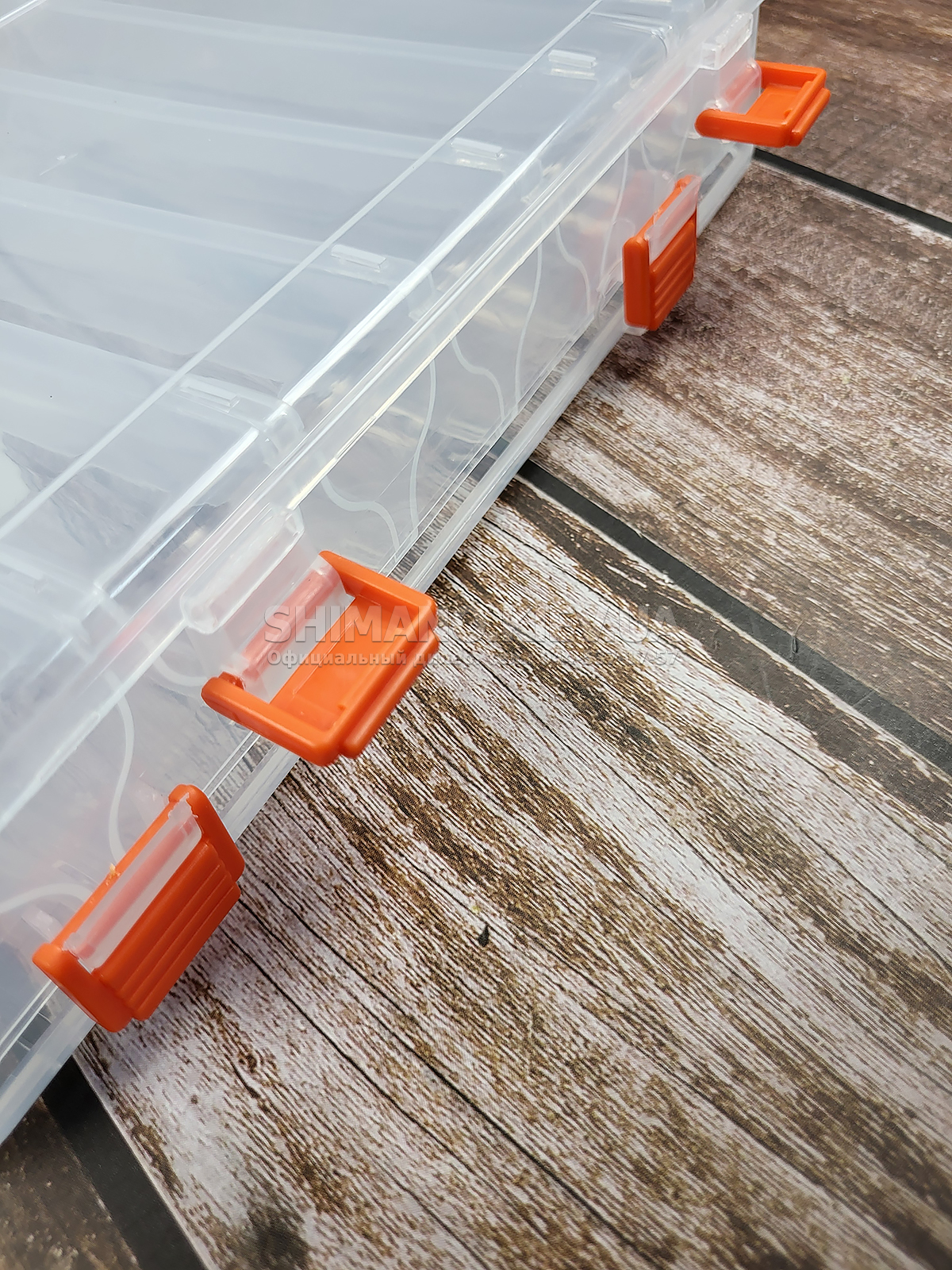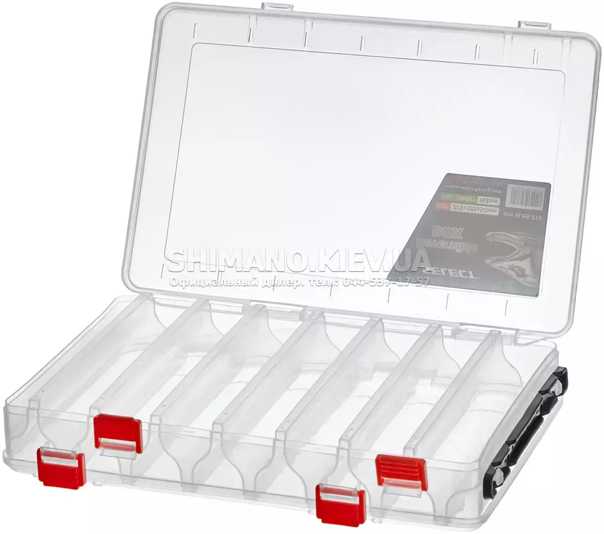 Коробка Select Reversible ідеально підходить для зберігання і транспортування воблерів. Завдяки двосторонній конструкції і трикутним відсікам, вона дозволяє помістити велику кількість приманок. При цьому трійники лягають в спеціальні поглиблення і не дряпають покриття воблерів. Коробка має наскрізні вентиляційні отвори, через які буде випаровуватися волога, накопичена після риболовлі, запобігаючи окислення гачків.Select Reversible виконана з міцного і еластичного пластику, оснащена поворотними петлями і надійними застібками.