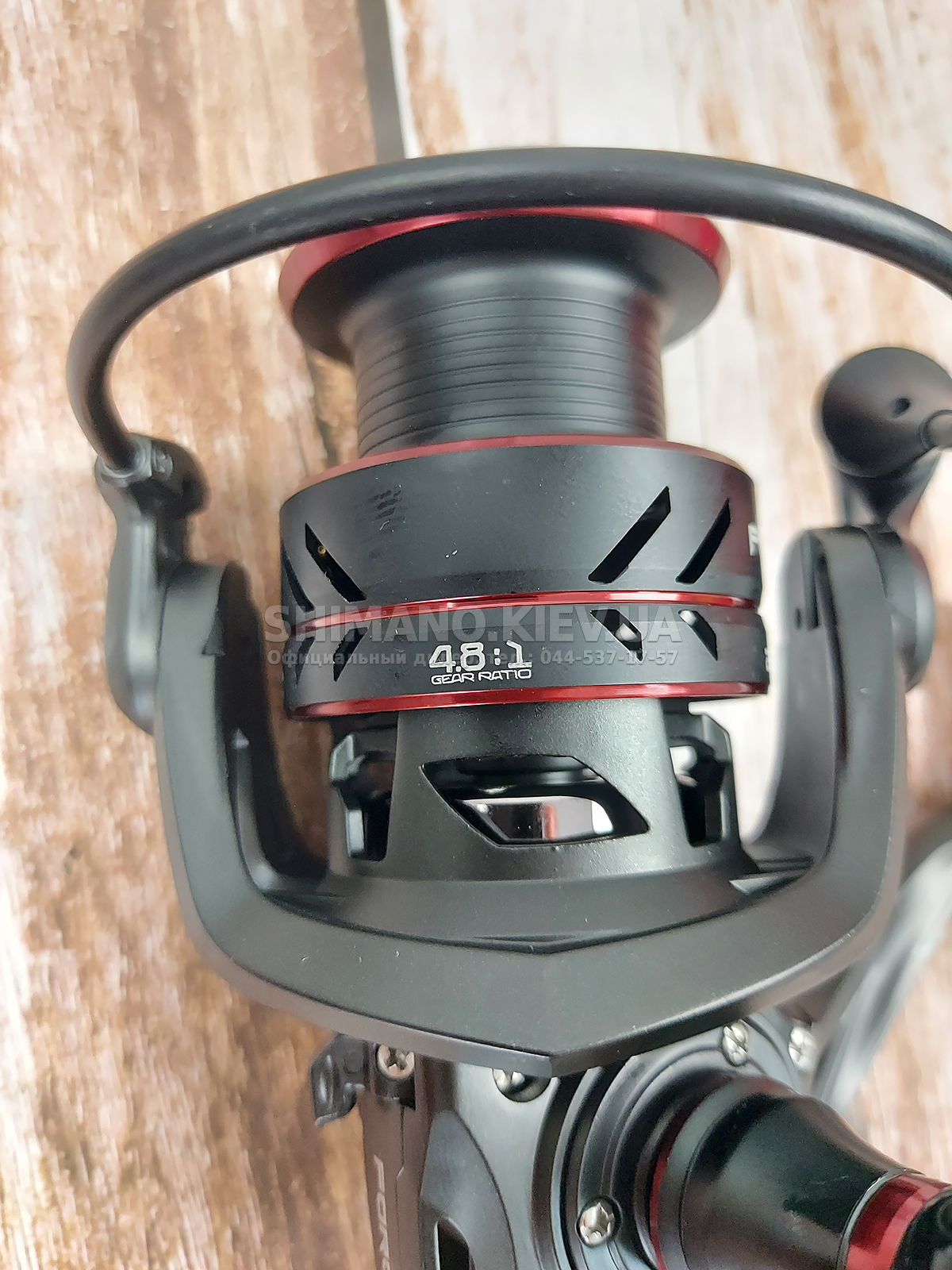 Спінінгова котушказ пониженим передавальним числом (4.8:1), що забезпечує плавну та потужну тягу. Має надійний внутрішній механізм, що у поєднанні з 6 шарикопідшипниками та 1 роликовим підшипником гарантує стабільну й довговічну роботу. Ролик жилковкладача оснащений двома підшипниками, що зменшує тертя та сприяє рівномірному укладанню шнура. Алюмінієва шпуля зі скошеним переднім бортиком дозволяє досягати дальніх закидів. Металева рукоятка вкручується безпосередньо у вісь ведучої шестерні, забезпечуючи максимальну жорсткість конструкції.Модель представлена у варіантах із глибокою та низькопрофільною шпулями, що дозволяє підібрати оптимальний варіант під різні умови ловлі.