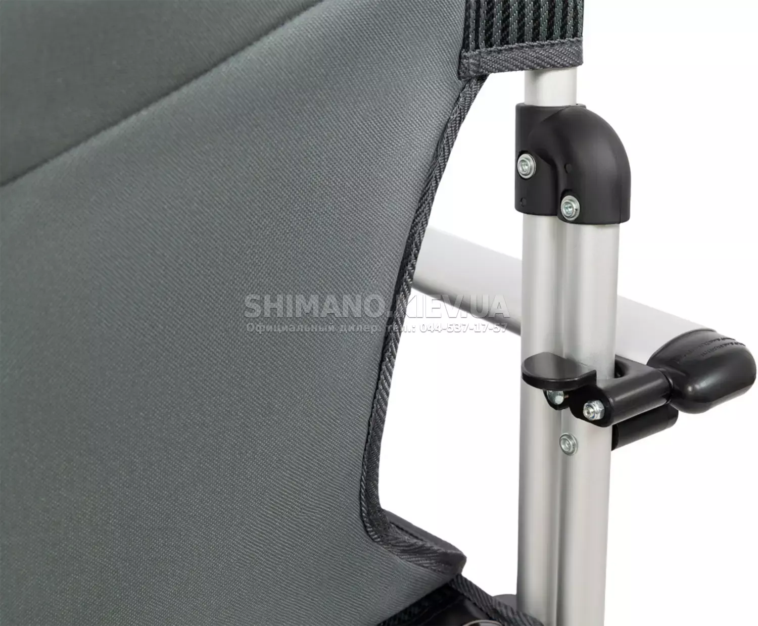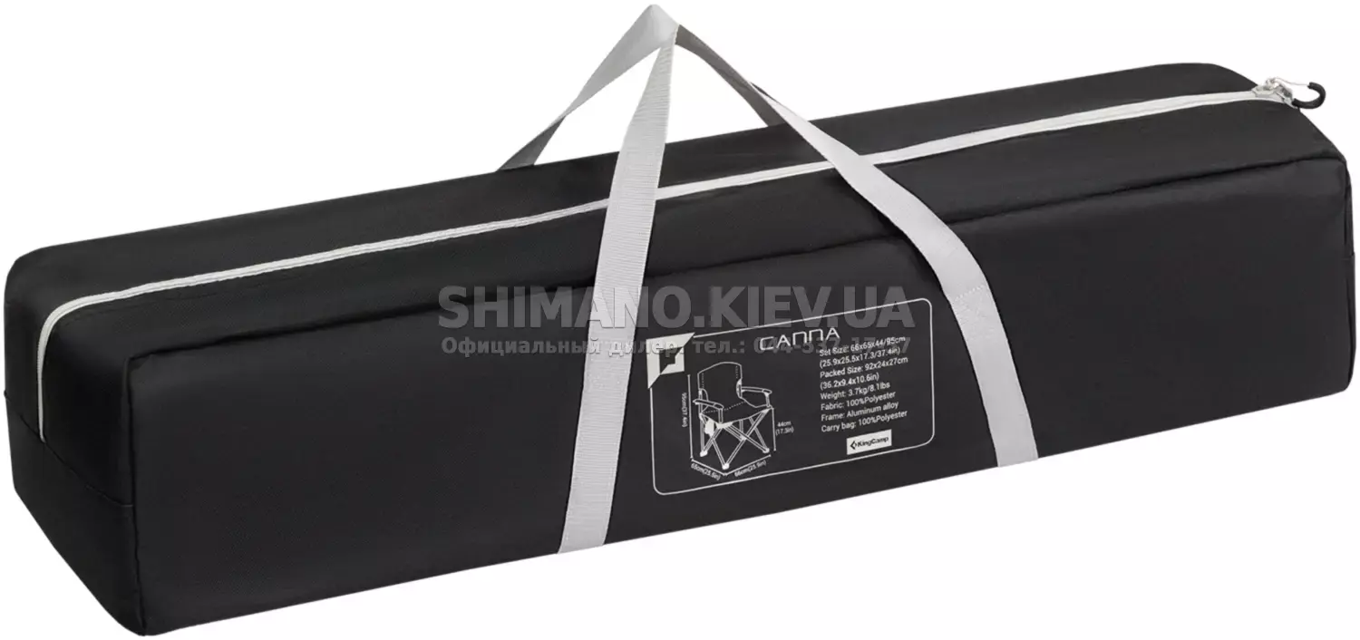 Каркас виготовлений зі сталі, а сидіння – міцного поліестеру. Таке поєднання гарантує комфорт та зберігає стійку основу крісла. Міцні підлокітники та велика спинка забезпечують стабільне сидіння. Збоку знаходиться спеціальна сумка-холодильник, яка зберігає напої прохолодними.