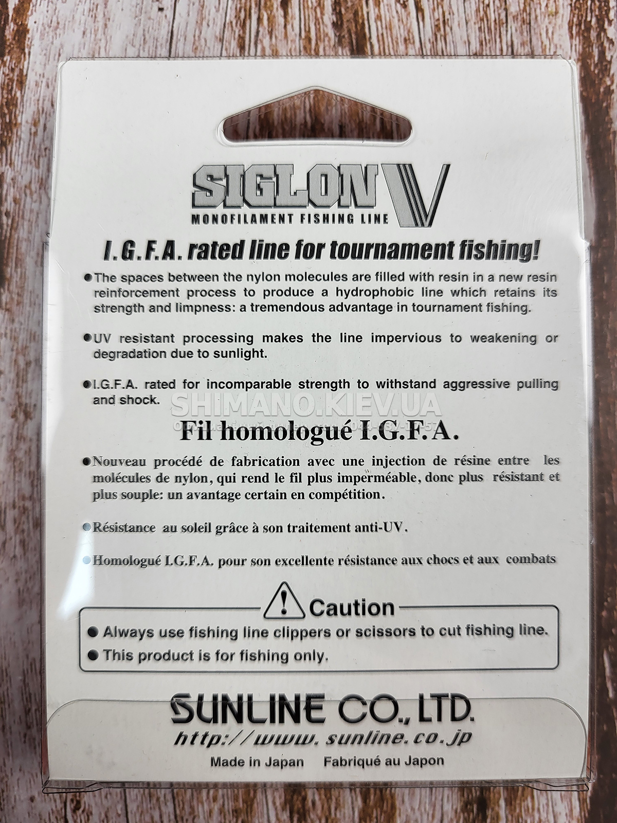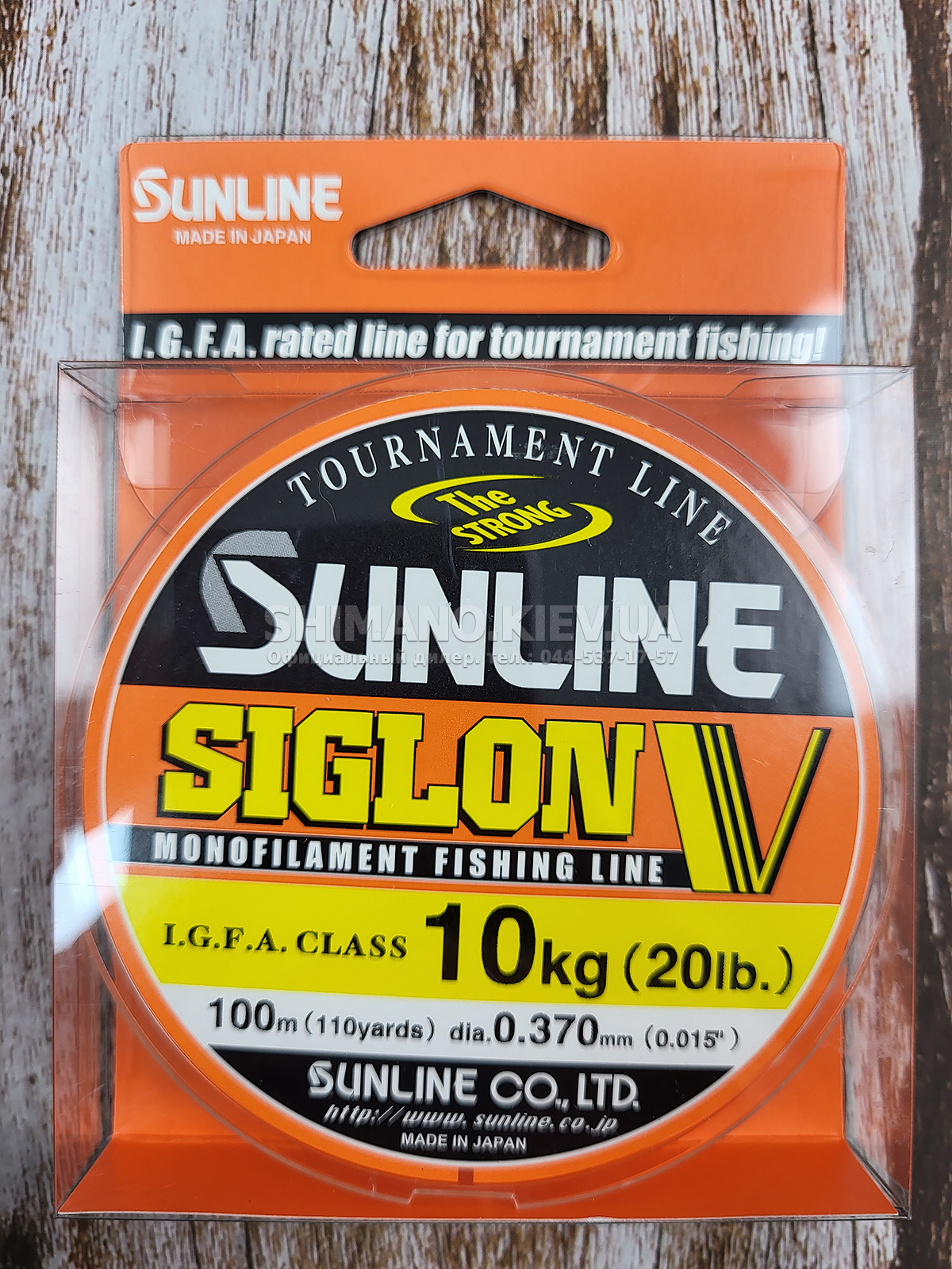 Оновлена версія бюджетної універсальної високоякісної волосіні. Siglon V має тришарове покриття полімерною смолою за новим методом, що значно покращує її робочі якості. м'якість, міцність, розтяжність, зносостійкість та знижує вологопоглинання. Цю волосінь можна з однаковим успіхом використовувати для різних методів як літньої, так і зимової риболовлі. Лісочка випускається в розмотках 30, 100 і 150м, при цьому розмотування 30 і 100м поставляються в зручних блоках по 10 з'єднаних між собою бобін. Висока якість, широкий спектр діаметрів, демократична ціна робить Siglon V однією з найкращих пропозицій щодо співвідношення ціна/якість на ринку.
