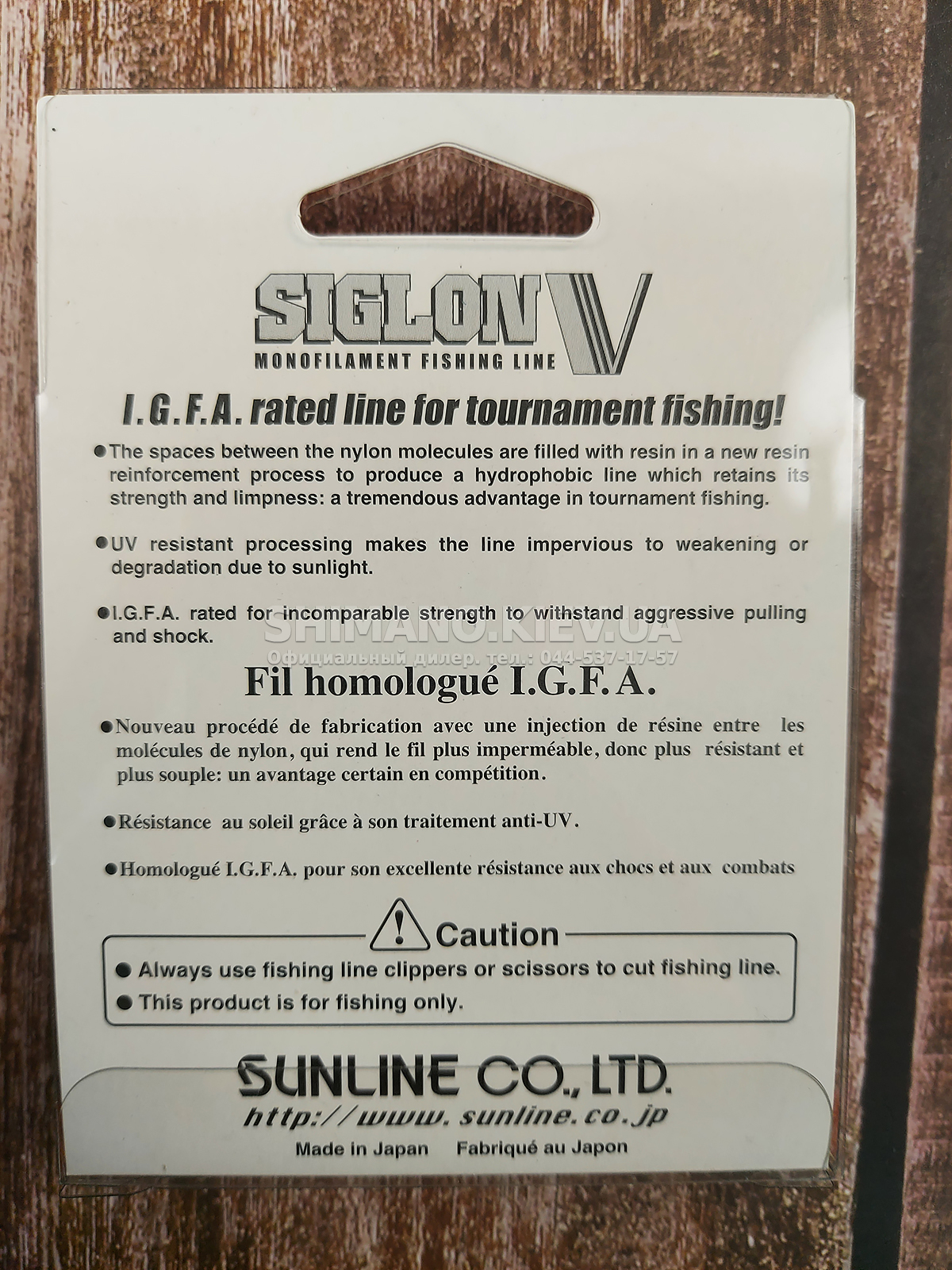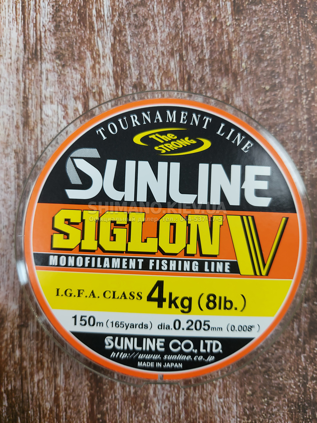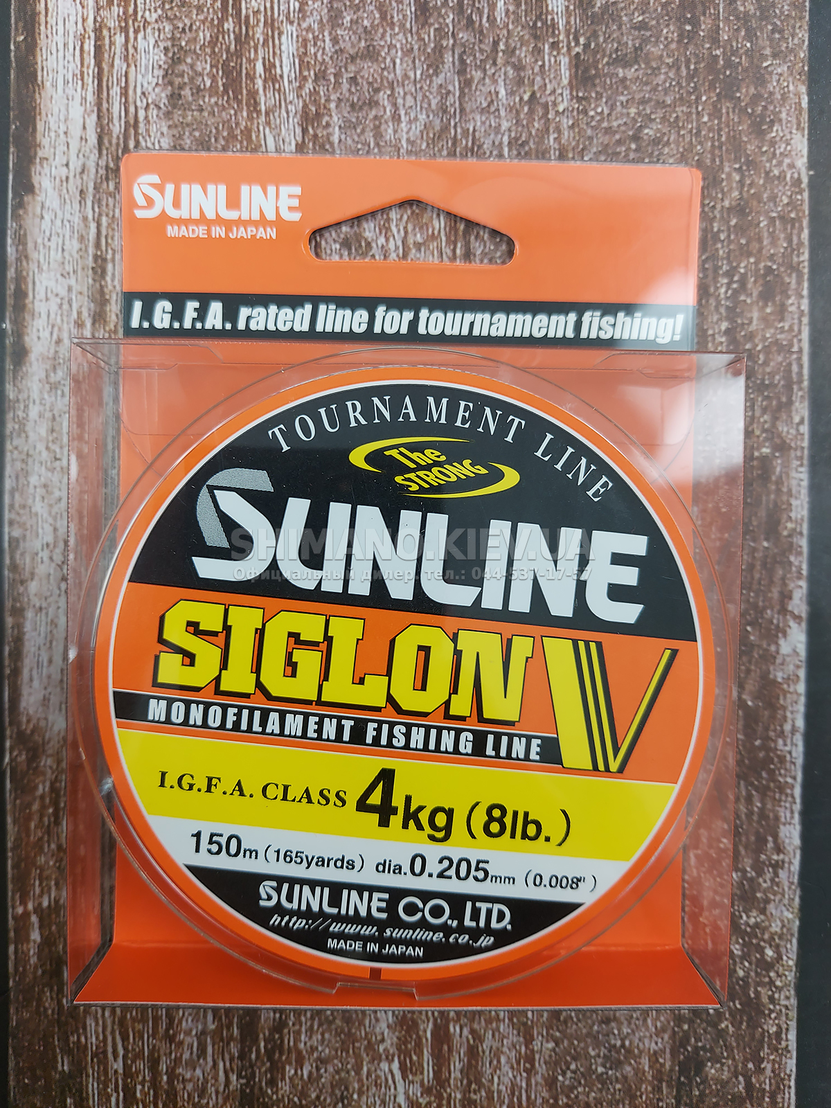 Оновлена версія бюджетної універсальної високоякісної волосіні. Siglon V має тришарове покриття полімерною смолою за новим методом, що значно покращує її робочі якості. м'якість, міцність, розтяжність, зносостійкість та знижує вологопоглинання. Цю волосінь можна з однаковим успіхом використовувати для різних методів як літньої, так і зимової риболовлі. Лісочка випускається в розмотках 30, 100 і 150м, при цьому розмотування 30 і 100м поставляються в зручних блоках по 10 з'єднаних між собою бобін. Висока якість, широкий спектр діаметрів, демократична ціна робить Siglon V однією з найкращих пропозицій щодо співвідношення ціна/якість на ринку.