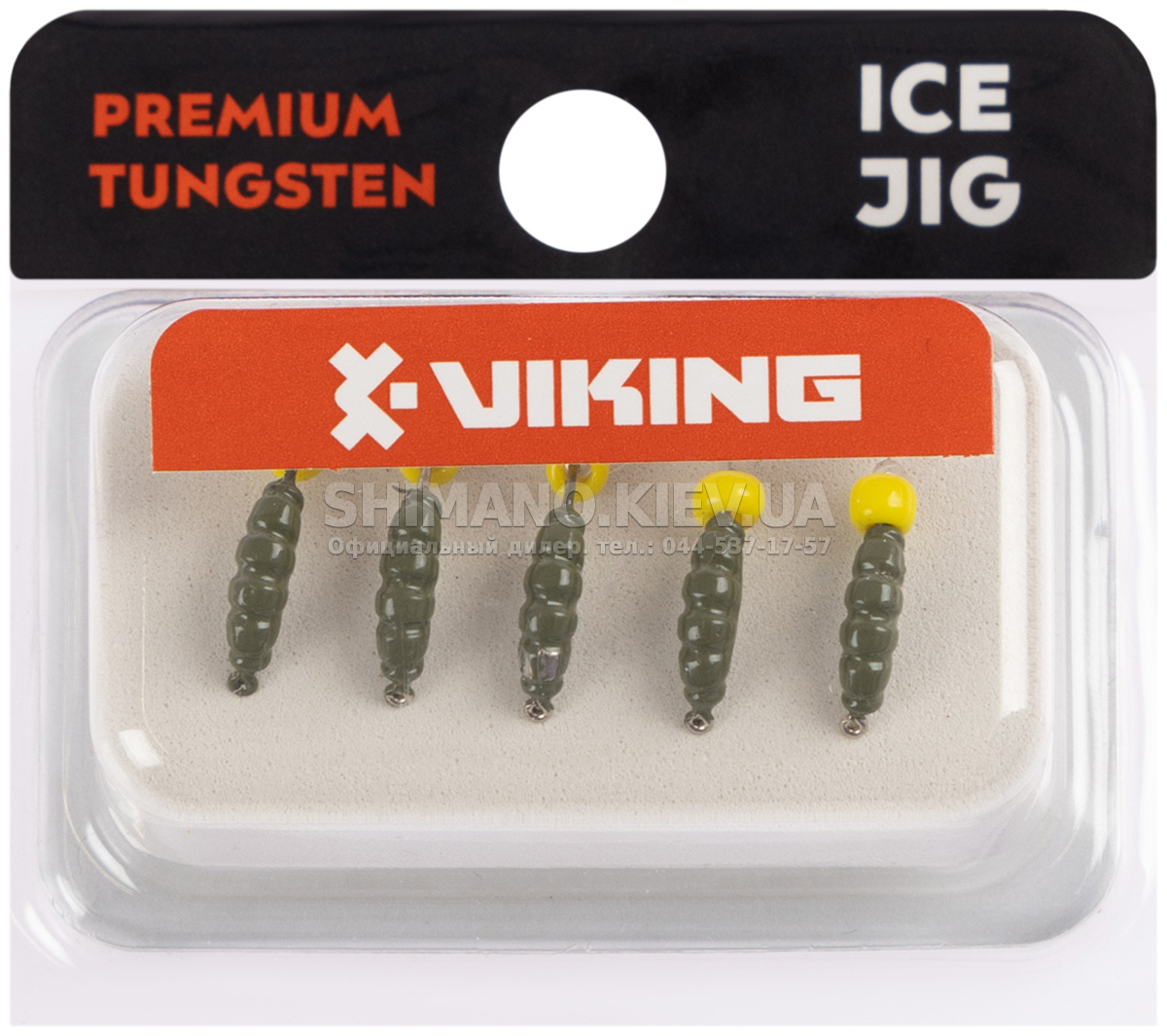Мормишка вольфрамова Viking Fishing Shrimp+bead 0.64g 8mm Olive+Y (5шт)