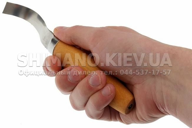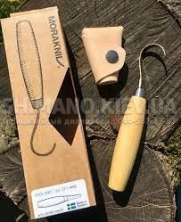 Morakniv Hook Knife - традиційний шведський ніж-ложкоріз, призначений для формування увігнутих поверхонь, а також вирізання заглиблень в ложках, чашках, тарілках та інших виробах з дерева. Напівкруглий клинок виконаний з високоякісної ламінованої сталі, має три заточені межі. Рукоятка виготовлена з довговічної берези.