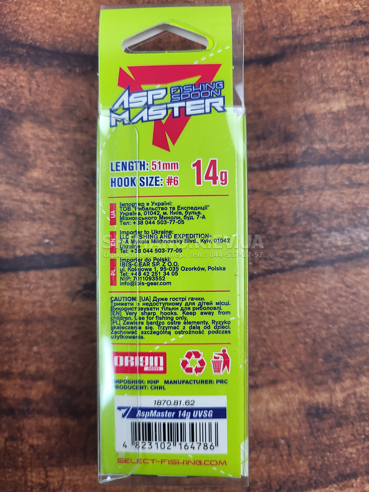 Блешня-кастмастер Select AspMaster 14.0g 51mm, колір: UVSG