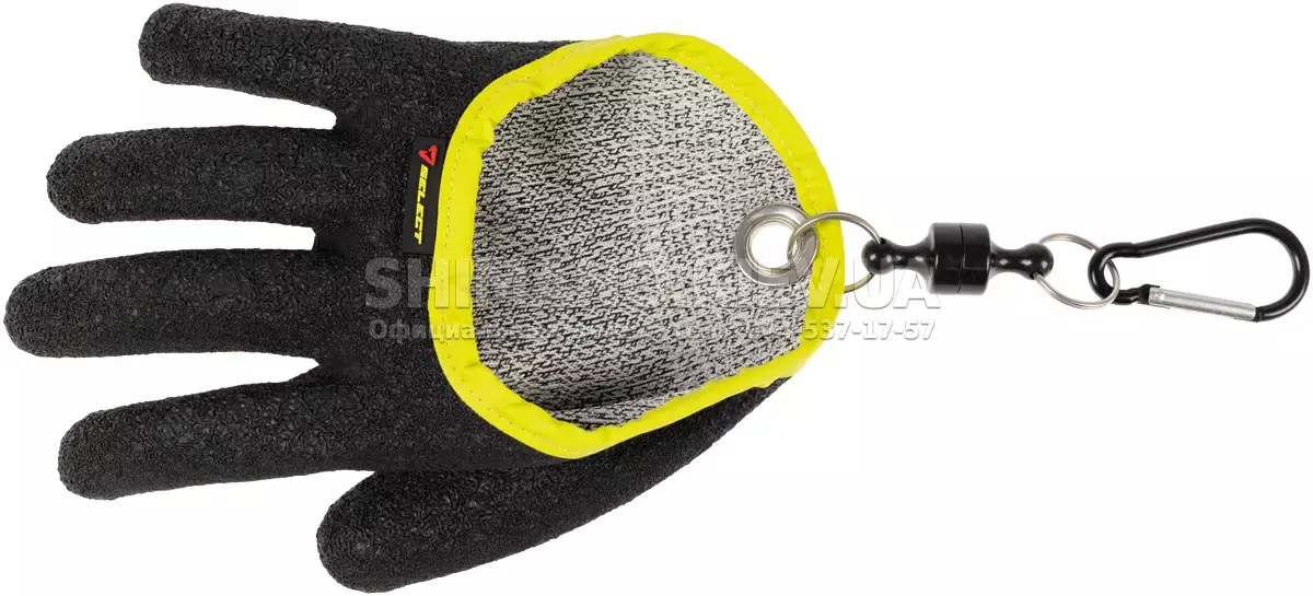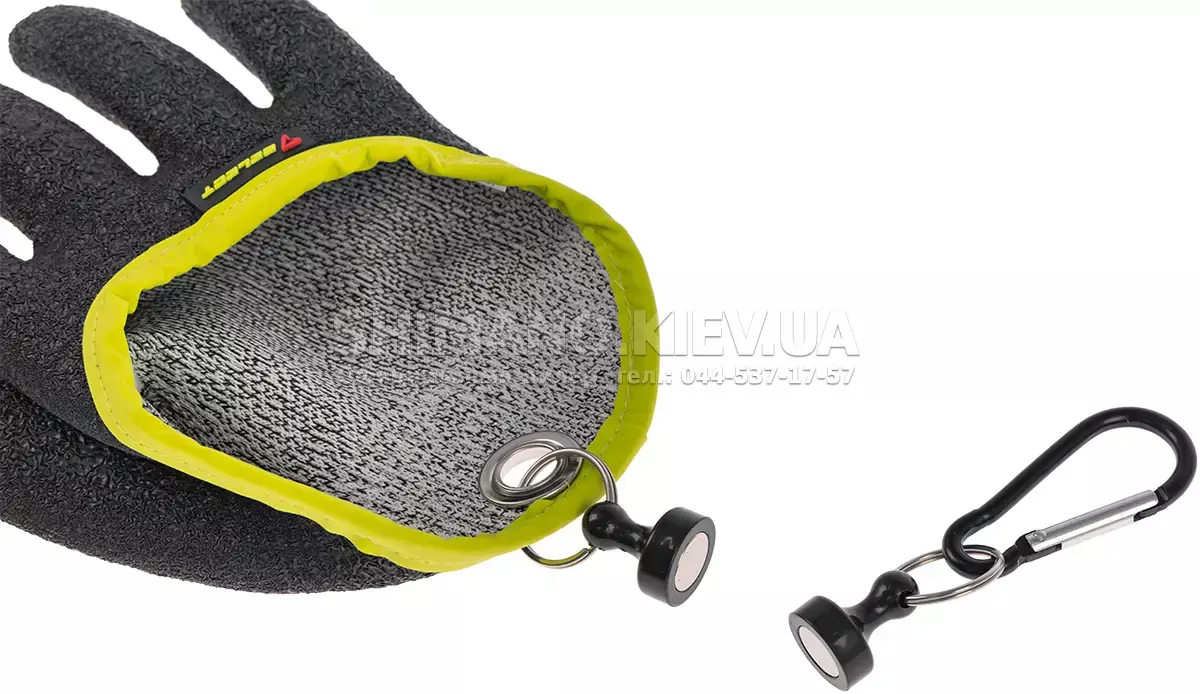 Ця рукавичка також зручна для утримання риби під час зняття приманки або підняття якоря в холодну погоду. Оснащена карабіном із магнітним кріпленням, тому її можна легко закріпити на поясі — завжди під рукою, коли потрібна.