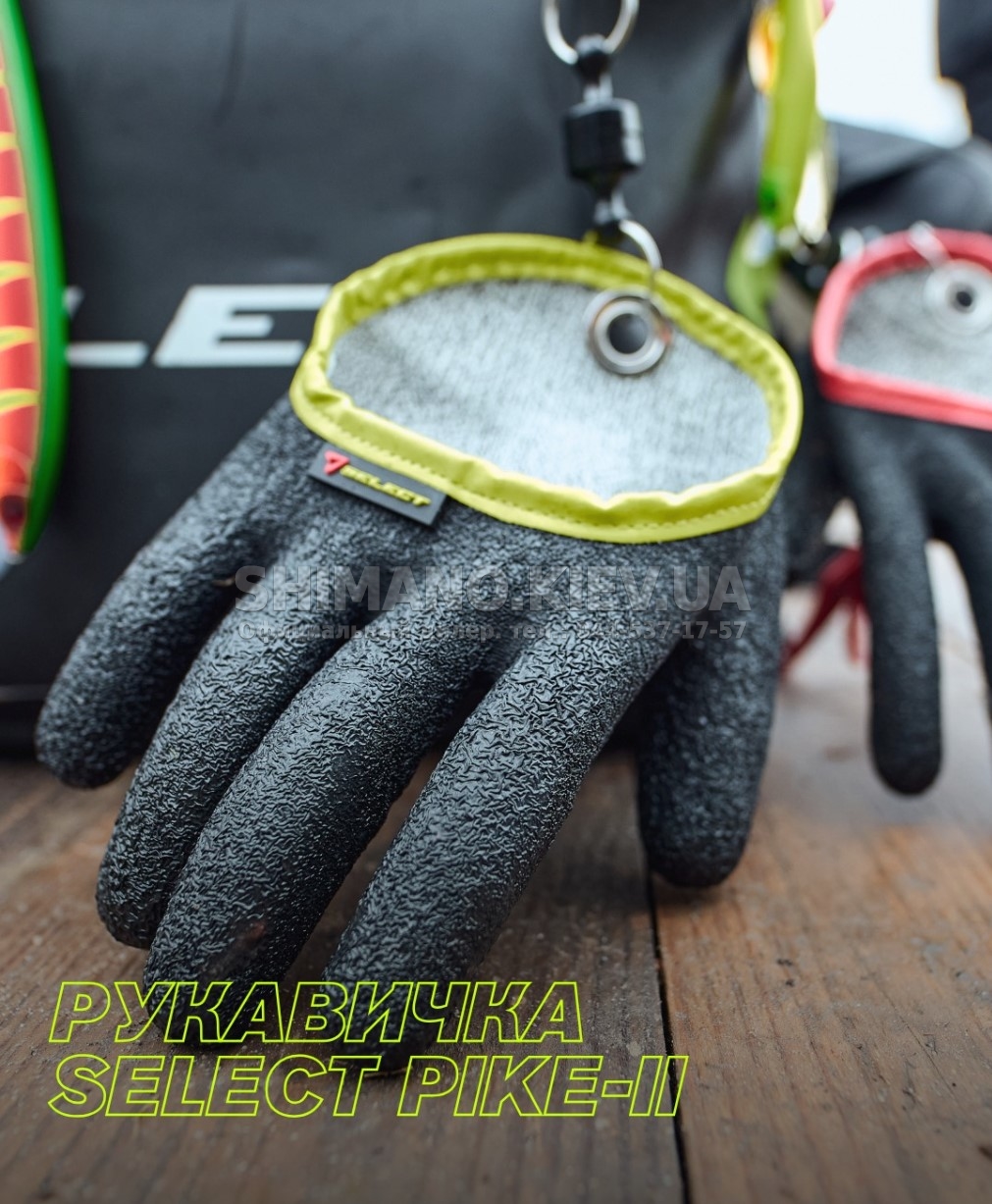 Рукавичка Select Pike-II — спеціалізована модель для риболовлі, створена для безпечного та комфортного вилучення риби з води. Завдяки щільній тканинній основі та зовнішньому прогумованому покриттю вона захищає руку від намокання, слизу й порізів об зуби хижої риби. А ще з нею можна витягувати якір у холодну погоду, не відморозивши пальці.
