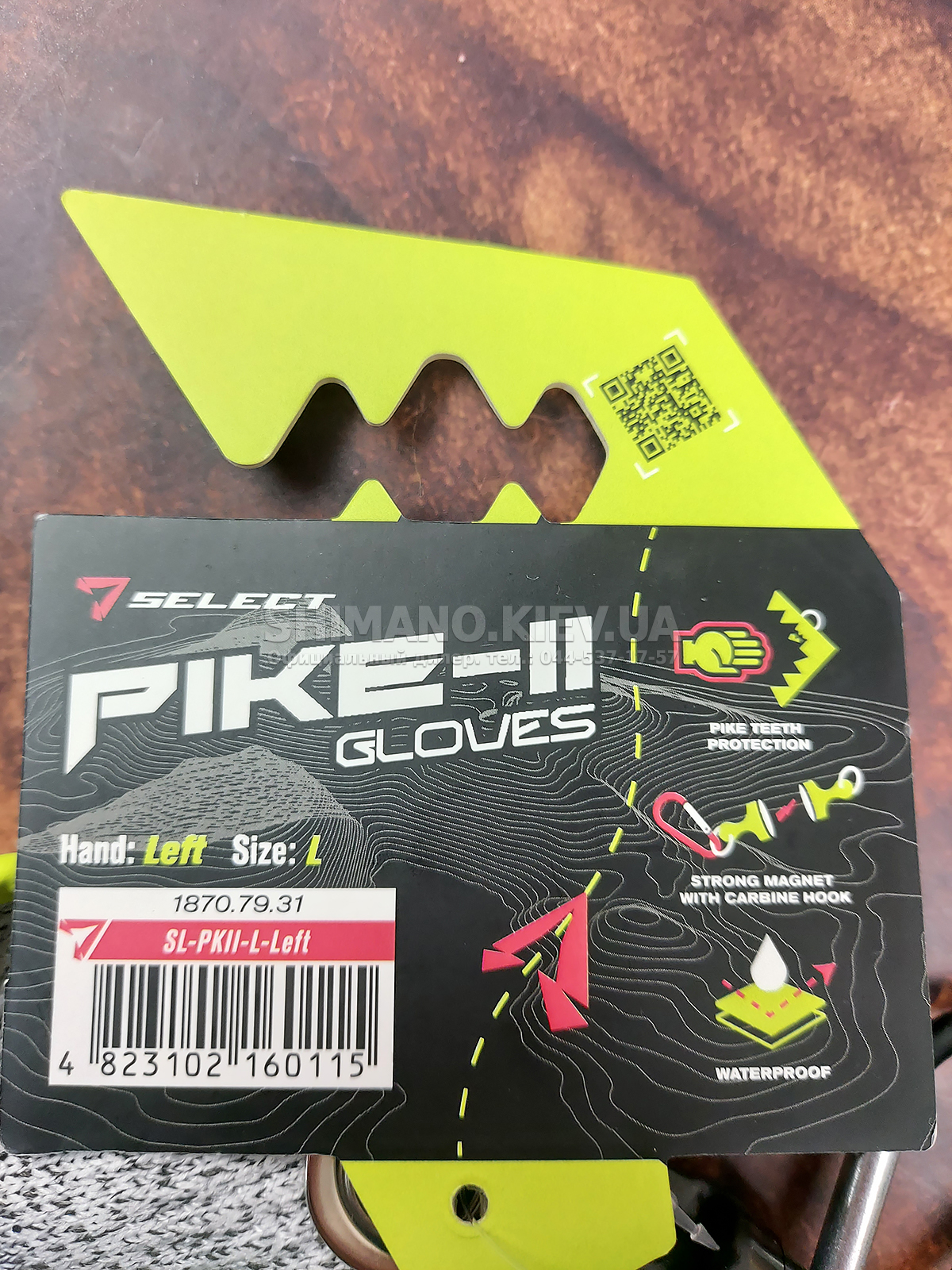 Модель Select Pike-II продається по одній штуці — окремо для лівої або правої руки. Завдяки вільному крою вона підходить для більшості розмірів долоні та забезпечує максимальний комфорт під час риболовлі.