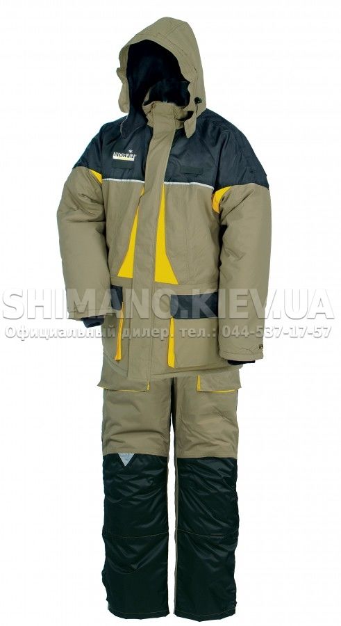 Удобный зимний костюм со всеми необходимыми элементами, предназначенными для зимней рыбалки.