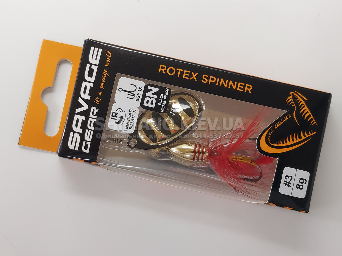 Savage Gear Rotex Spinner - серия вращающихся блесен от датской компании, отличающихся высоким качеством изготовления, превосходным дизайном, а также стабильными рабочими и уловистыми характеристиками. Все блесны линейки Rotex Spinner обладают отличными полетными качествами за счет применения увесистых компактных и обтекаемых сердечников. Лепестки блесен настолько тонко отстроены, что включаются в работу сразу же после приводнения, а также способны работать на медленных проводках, как в водоемах со стоячей водой, так и на течении. Каждая блесна окрашивается вручную с использованием серебра и меди, а также проходит индивидуальное тестирование в бассейне перед фасовкой. Блесны Savage Gear Rotex Spinner оснащены острейшими японскими крючками и качественными нержавеющими заводными кольцами. На каждом тройном крючке связана мушка из перьев, которая стабилизирует игру приманки, делает ее более плавной, а также дополнительно привлекает рыбу и служит точкой атаки. В наших условиях эти блесны подойдут для ловли всех пресноводных хищников. Модельный ряд блесен Rotex Spinner включает в себя пять размеров от 1 до 5.