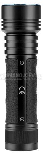 Фонарь оснащен тремя светодиодами Cree XP-L HD CW с максимальной яркостью 3200 люмен, с дальнойстью светового луча до 250 метров и с перезаряжаемым аккумулятором.