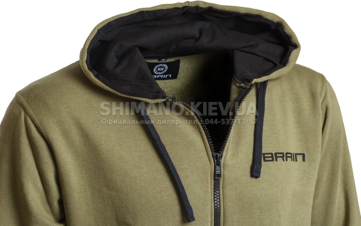Кофта Brain Carp Jacket - демисезонная верхняя одежда с полноразмерной молнией для рыбалки и повседневной носки. Может использоваться самостоятельно в сухую прохладную погоду или  в качестве утеплителя под водонепроницаемую куртку во время дождя. Кофта выполнена из мягкого материала (60% полиэстер и 40% хлопок), внутренняя сторона которого представляет собой невысокий ворс для сохранения тепла. Глубокий капюшон с затяжками поможет защитить голову и шею от ветра и холода.